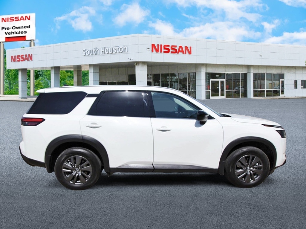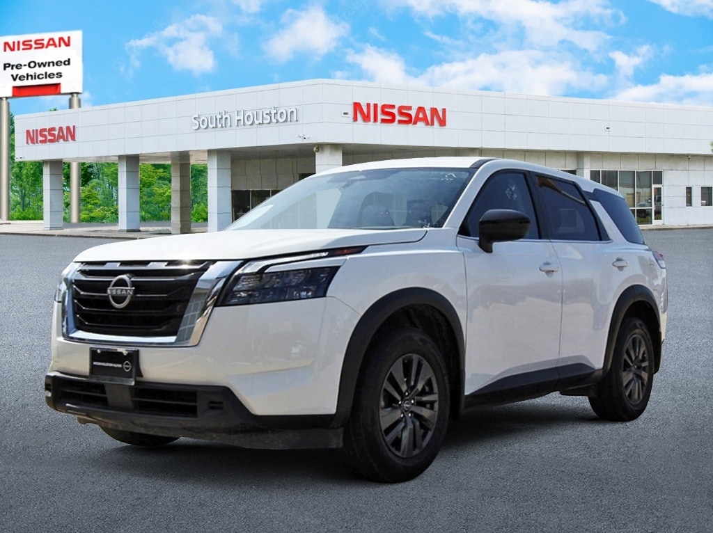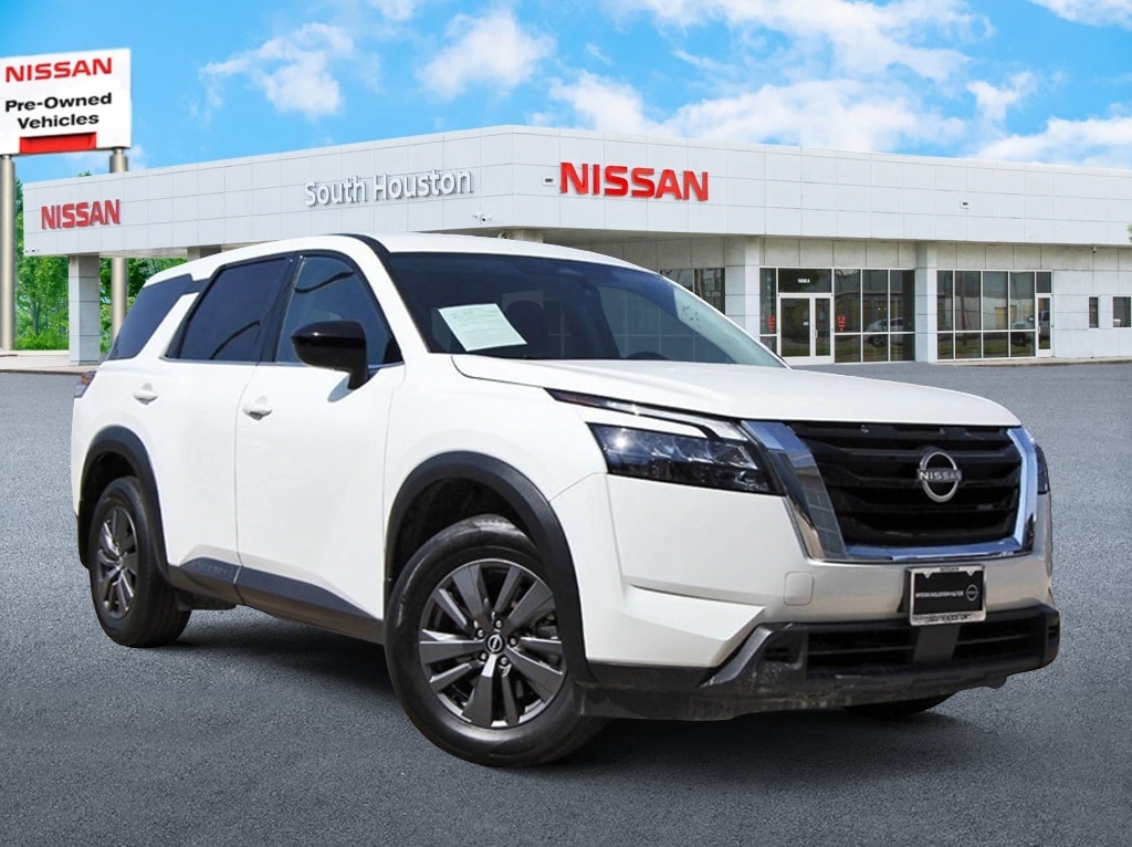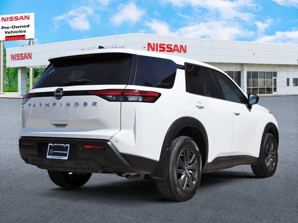 South Houston Nissan is proud to present you with another True Market Priced Pre-Owned Vehicle. This 2025 Nissan Pathfinder S Nissan Certified is loaded with the following Factory Options: Nissan Certified Certified Nissan Certified Certified, 3rd row seats: bench, 4-Wheel Disc Brakes, 6 Speakers, ABS brakes, Air Conditioning, Alloy wheels, AM/FM radio: SiriusXM, Auto High-beam Headlights, Automatic temperature control, Bench Seat Carpeted Floor Mats (set of 4), Black Splash Guards (set of 4), Blind Spot Warning, Brake assist, Bumpers: body-color, Cloth Seating Surfaces, Delay-off headlights, Driver door bin, Driver vanity mirror, Dual front impact airbags, Dual front side impact airbags, Electronic Stability Control, Four wheel independent suspension, Front anti-roll bar, Front Bucket Seats, Front Center Armrest, Front dual zone A/C, Front reading lights, Fully automatic headlights, Illuminated entry, Knee airbag, Low tire pressure warning, NissanConnect featuring Apple CarPlay and Android Auto, Occupant sensing airbag, Outside temperature display, Overhead airbag, Overhead console, Panic alarm, Passenger door bin, Passenger vanity mirror, Power door mirrors, Power steering, Power windows, Radio data system, Radio: AM/FM Audio System with NissanConnect, Rear air conditioning, Rear anti-roll bar, Rear Parking Sensors, Rear reading lights, Rear side impact airbag, Rear window defroster, Rear window wiper, Reclining 3rd row seat, Remote keyless entry, Security system, Speed control, Speed-sensing steering, Split folding rear seat, Spoiler, Steering wheel mounted audio controls, Tachometer, Telescoping steering wheel, Tilt steering wheel, Traction control, Trip computer, Variably intermittent wipers, and Wheels: 18" x 8J Painted Alloy!!