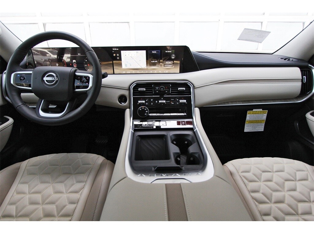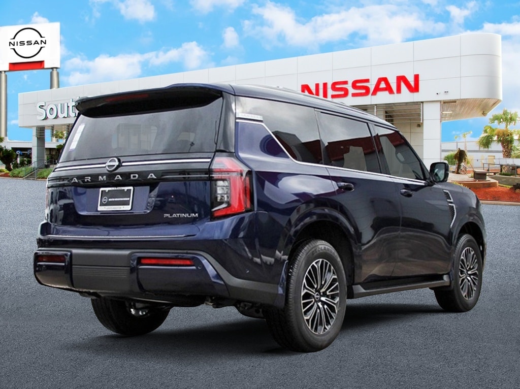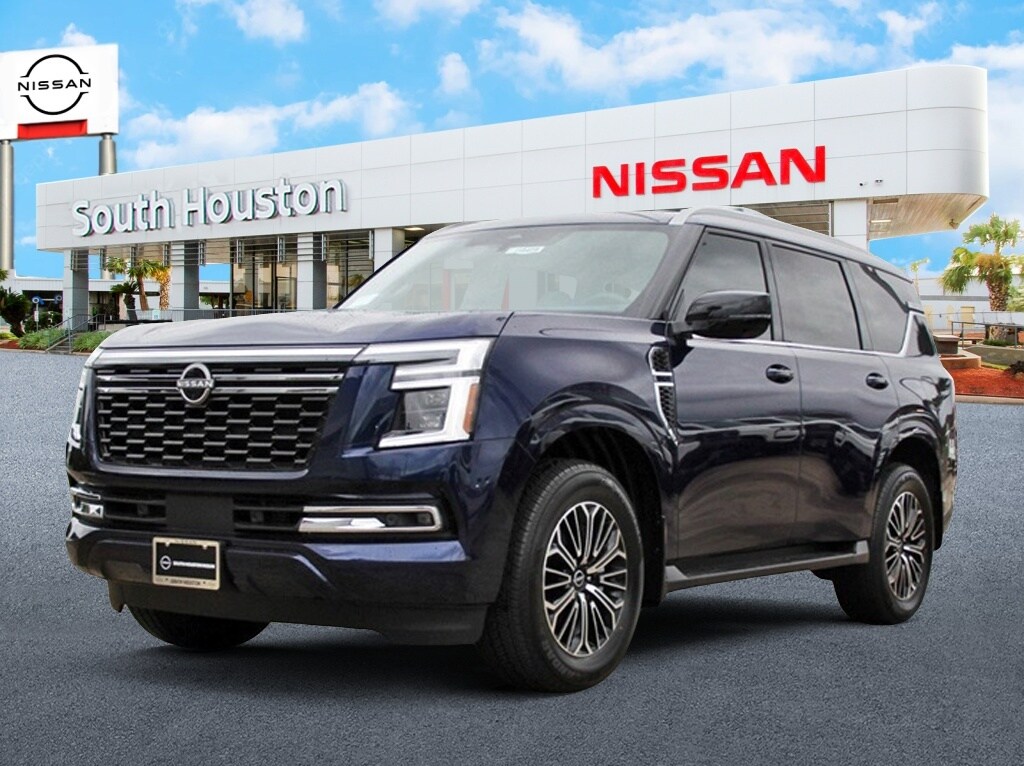 South Houston Nissan is proud to present you with another True Market Priced Vehicle. This 2025 Nissan Armada Platinum is loaded with the following Factory Options: 12 Speakers, 20" Painted Alloy Wheels, 3rd row seats: split-bench, 4-Wheel Disc Brakes, ABS brakes, Air Conditioning, Alloy wheels, AM/FM radio: SiriusXM, Anti-whiplash front head restraints, Auto High-beam Headlights, Auto tilt-away steering wheel, Auto-dimming door mirrors, Auto-dimming Rear-View mirror, Auto-leveling suspension, Automatic temperature control, Brake assist, Bumpers: body-color, Climate Controlled Heated & Ventilated Front Seats, Delay-off headlights, Driver door bin, Driver vanity mirror, Dual front impact airbags, Dual front side impact airbags, Electronic Stability Control, Emergency communication system: NissanConnect Services, Four wheel independent suspension, Front anti-roll bar, Front Bucket Seats, Front Center Armrest, Front dual zone A/C, Front fog lights, Front reading lights, Fully automatic headlights, Garage door transmitter: myQ Connected Garage, Genuine wood dashboard insert, Heated door mirrors, Heated front seats, Heated rear seats, Heated steering wheel, HVAC memory, Illuminated entry, Knee airbag, Leather steering wheel, Low tire pressure warning, Memory seat, Navigation System, Occupant sensing airbag, Outside temperature display, Overhead airbag, Overhead console, Panic alarm, Passenger door bin, Passenger vanity mirror, Power door mirrors, Power driver seat, Power Liftgate, Power moonroof, Power passenger seat, Power steering, Power windows, Quilted Leather Seat Trim, Radio: NissanConnect w/SiriusXM 360L, Rain sensing wipers, Rear air conditioning, Rear anti-roll bar, Rear reading lights, Rear window defroster, Rear window wiper, Reclining 3rd row seat, Remote keyless entry, Security system, Speed control, Speed-sensing steering, Speed-Sensitive Wipers, Split folding rear seat, Spoiler, Steering wheel memory, Steering wheel mounted audio controls, Tachometer, Telescoping steering wheel, Tilt steering wheel, Traction control, Trip computer, Turn signal indicator mirrors, Variably intermittent wipers, Ventilated front seats, and Voltmeter!!