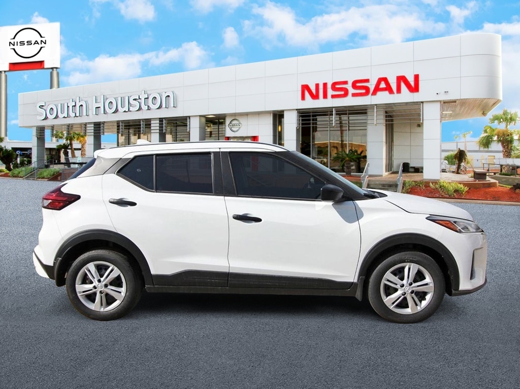 South Houston Nissan is proud to present you with another True Market Priced Vehicle. This 2025 Nissan Kicks Play S is loaded with the following Factory Options: 16" Steel Wheels with Full Covers, 6 Speakers, ABS brakes, Air Conditioning, AM/FM Audio System, AM/FM radio, Apple CarPlay/Android Auto, Auto High-beam Headlights, Blind Spot Warning, Brake assist, Bumpers: body-color, Carpeted Floor Mats with Cargo Mat, Center Armrest with Storage, Cloth Seat Trim with Single Stitch, Driver door bin, Driver vanity mirror, Driver's Seat Mounted Armrest, Dual front impact airbags, Dual front side impact airbags, Electronic Stability Control, Front anti-roll bar, Front Bucket Seats, Front reading lights, Front wheel independent suspension, Fully automatic headlights, Illuminated entry, Knee airbag, Low tire pressure warning, Occupant sensing airbag, Outside temperature display, Overhead airbag, Panic alarm, Passenger door bin, Passenger vanity mirror, Power door mirrors, Power steering, Power windows, Radio data system, Rear Parking Sensors, Rear reading lights, Rear side impact airbag, Rear window defroster, Rear window wiper, Remote keyless entry, Speed control, Splash Guards Grain (4 Piece), Split folding rear seat, Sport steering wheel, Steering wheel mounted audio controls, Tachometer, Telescoping steering wheel, Tilt steering wheel, Traction control, Trip computer, and Variably intermittent wipers!!