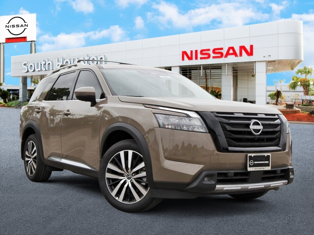 South Houston Nissan is proud to present you with another True Market Priced Vehicle. This 2025 Nissan Pathfinder Platinum is loaded with the following Factory Options: 13 Speakers, 3rd row seats: bench, 4-Wheel Disc Brakes, ABS brakes, Air Conditioning, Alloy wheels, AM/FM radio: SiriusXM, Auto High-beam Headlights, Auto tilt-away steering wheel, Auto-dimming Rear-View mirror, Automatic temperature control, Bodyside moldings, Bose Premium Audio System, Brake assist, Bumpers: body-color, Climate Controlled Front Bucket Seats, Delay-off headlights, Driver door bin, Driver vanity mirror, Dual front impact airbags, Dual front side impact airbags, Electronic Stability Control, Emergency communication system, Exterior Parking Camera Rear, Four wheel independent suspension, Front anti-roll bar, Front Bucket Seats, Front Center Armrest, Front dual zone A/C, Front reading lights, Fully automatic headlights, Garage door transmitter: HomeLink, Heads-Up Display, Heated door mirrors, Heated front seats, Heated rear seats, Heated steering wheel, Illuminated entry, Knee airbag, Leather steering wheel, Low tire pressure warning, Memory seat, Navigation system: NissanConnect with Navigation and Services, NissanConnect featuring Apple CarPlay and Android Auto, NissanConnect w/Navigation & Services, Occupant sensing airbag, Outside temperature display, Overhead airbag, Overhead console, Panic alarm, Passenger door bin, Passenger vanity mirror, Power door mirrors, Power driver seat, Power Liftgate, Power moonroof, Power passenger seat, Power steering, Power windows, Radio data system, Radio: AM/FM Audio System, Rain sensing wipers, Rear air conditioning, Rear anti-roll bar, Rear reading lights, Rear seat center armrest, Rear side impact airbag, Rear window defroster, Rear window wiper, Reclining 3rd row seat, Remote keyless entry, Security system, Semi-Aniline Leather-Appointed Seating Surfaces, Speed control, Speed-sensing steering, Speed-Sensitive Wipers, Split folding rear seat, Spoiler, Steering wheel memory, Steering wheel mounted audio controls, Tachometer, Telescoping steering wheel, Tilt steering wheel, Traction control, Trip computer, Turn signal indicator mirrors, Variably intermittent wipers, Ventilated front seats, and Wheels: 20" x 8J Machined Alloy!!