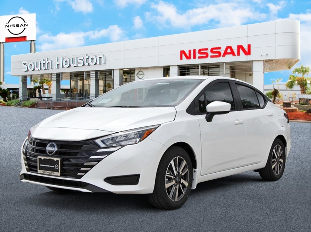 South Houston Nissan is proud to present you with another True Market Priced Vehicle. This 2025 Nissan Versa 1.6 SV is loaded with the following Factory Options: 16" Aluminum Alloy Wheels, 4 Speakers, ABS brakes, Air Conditioning, Alloy wheels, Apple CarPlay/Android Auto, Auto High-beam Headlights, Blind Spot Warning, Brake assist, Bumpers: body-color, Delay-off headlights, Driver door bin, Driver vanity mirror, Dual front impact airbags, Dual front side impact airbags, Electronic Stability Control, Front anti-roll bar, Front Bucket Seats, Front Center Armrest, Front reading lights, Front wheel independent suspension, Fully automatic headlights, Heated door mirrors, Illuminated entry, Knee airbag, Low tire pressure warning, Occupant sensing airbag, Outside temperature display, Overhead airbag, Panic alarm, Passenger door bin, Passenger vanity mirror, Power door mirrors, Power steering, Power windows, Radio data system, Radio: AM/FM Audio System, Rear Parking Sensors, Rear side impact airbag, Rear window defroster, Remote keyless entry, Speed control, Split folding rear seat, Steering wheel mounted audio controls, Tachometer, Telescoping steering wheel, Tilt steering wheel, Traction control, Trip computer, Upgraded Cloth Seat Trim, and Variably intermittent wipers!!