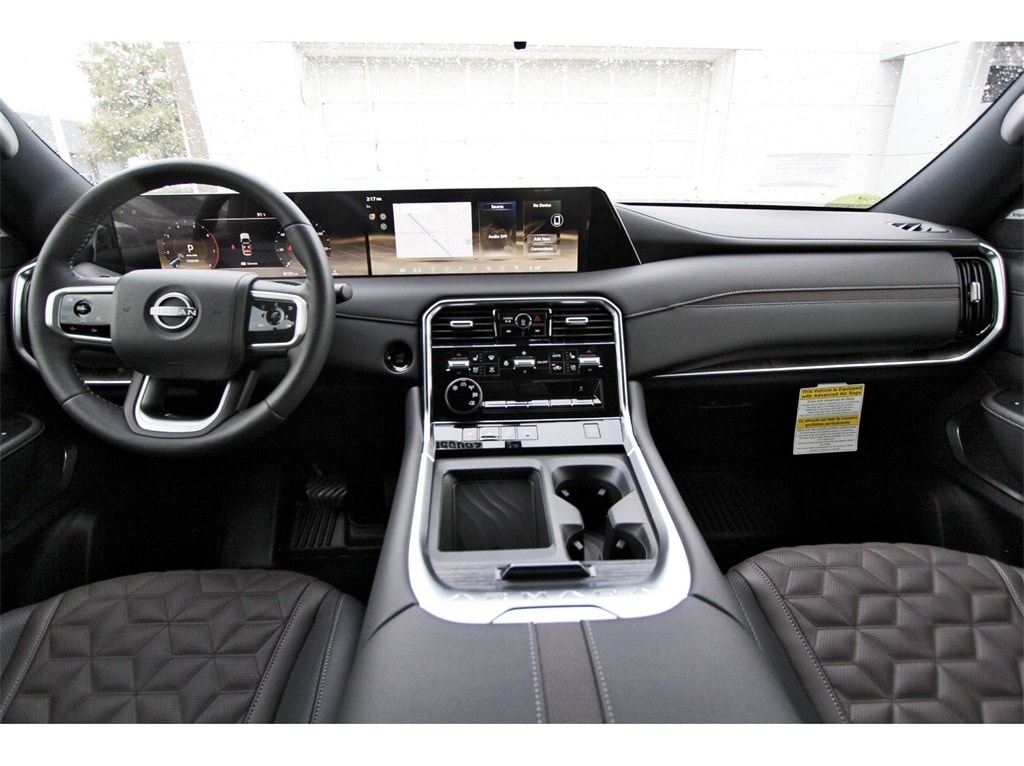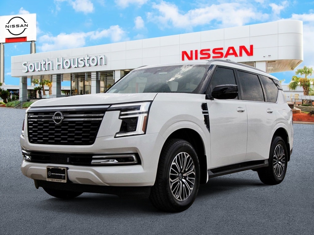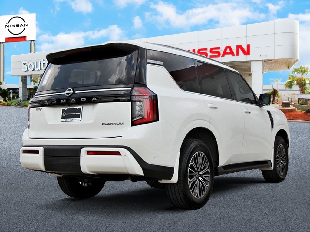 South Houston Nissan is proud to present you with another True Market Priced Vehicle. This 2026 Nissan Armada Platinum is loaded with the following Factory Options: 12 Speakers, 3rd row seats: split-bench, 4-Wheel Disc Brakes, ABS brakes, Air Conditioning, Alloy wheels, AM/FM radio: SiriusXM w/360L, Anti-whiplash front head restraints, Apple CarPlay/Android Auto, Auto High-beam Headlights, Auto tilt-away steering wheel, Auto-dimming door mirrors, Auto-dimming Rear-View mirror, Auto-leveling suspension, Automatic temperature control, Brake assist, Bumpers: body-color, Carpeted Floor Mats with Captain Chairs, Center Front Spoiler, Climate Controlled Heated and Ventilated Front Seats, Compass, Cross Bars, Delay-off headlights, Driver door bin, Driver vanity mirror, Dual front impact airbags, Dual front side impact airbags, Electronic Stability Control, Emergency communication system: NissanConnect Services, Four wheel independent suspension, Front anti-roll bar, Front Bucket Seats, Front Center Armrest, Front dual zone A/C, Front fog lights, Front reading lights, Fully automatic headlights, Garage door transmitter: HomeLink, Genuine wood dashboard insert, Heated door mirrors, Heated front seats, Heated rear seats, Heated steering wheel, HVAC memory, Illuminated entry, Illuminated Kick Plates, Knee airbag, Leather steering wheel, Low tire pressure warning, Memory seat, Navigation system: Google Maps, Occupant sensing airbag, Outside temperature display, Overhead airbag, Overhead console, Panic alarm, Passenger door bin, Passenger vanity mirror, Power door mirrors, Power driver seat, Power Liftgate, Power moonroof, Power passenger seat, Power steering, Power windows, Premium Paint, Quilted Leather Seat Trim, Radio: NissanConnect with SiriusXM 360L, Rain sensing wipers, Rear air conditioning, Rear anti-roll bar, Rear Bumper Protector, Rear reading lights, Rear window defroster, Rear window wiper, Reclining 3rd row seat, Remote keyless entry, Security system, Speed control, Speed-sensing steering, Speed-Sensitive Wipers, Splash Guards, Split folding rear seat, Spoiler, Steering wheel memory, Steering wheel mounted audio controls, Tachometer, Telescoping steering wheel, Tilt steering wheel, Traction control, Trip computer, Turn signal indicator mirrors, Variably intermittent wipers, Ventilated front seats, Voltmeter, and Wheels: 20" x 8.5J Machined and Painted Alloy!!