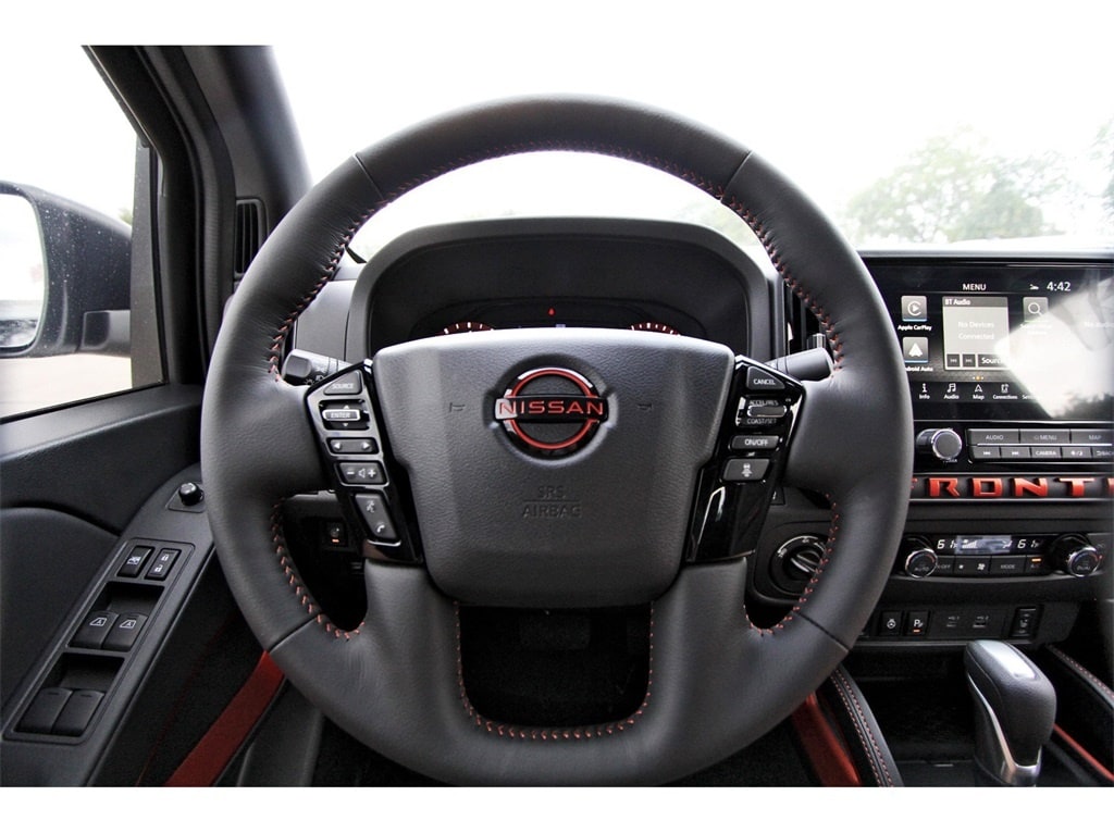 South Houston Nissan is proud to present you with another True Market Priced Vehicle. This 2026 Nissan Frontier PRO-4X is loaded with the following Factory Options: 4WD PRO Premium Package (Auto-Dimming Mirror, Auto-Tilt & Slide Sunroof w/Manual Shade, Fender Premium Audio System w/10 Speakers, HomeLink UGDO, Leather Seat Trim, Nissan Door-to-Door Navigation, Partial Under-Seat Storage Delete, and Traffic Sign Recognition (TSR)), PRO-4X Convenience Package (Heated Steering Wheel, Intelligent Around View Monitor (I-AVM), and Wireless Charging for Personal Devices), 4WD, 17" Painted Alloy Wheels, 2-Tone Beadlock Style Wheel, 3.692 Axle Ratio, 4-Wheel Disc Brakes, 6 Speakers, ABS brakes, Air Conditioning, Alloy wheels, AM/FM radio: SiriusXM, Anti-whiplash front head restraints, Auto High-beam Headlights, Automatic temperature control, Blind Spot Warning, Brake assist, Bumpers: body-color, Delay-off headlights, Driver door bin, Driver vanity mirror, Dual front impact airbags, Dual front side impact airbags, Electronic Stability Control, Electronic Tailgate Lock, Emergency communication system, Essentials Kit, Front anti-roll bar, Front Bucket Seats, Front Center Armrest, Front dual zone A/C, Front fog lights, Front reading lights, Front wheel independent suspension, Fully automatic headlights, Heated Front Bucket Seats, Heated front seats, Heated steering wheel, Illuminated entry, Knee airbag, Leather steering wheel, Low tire pressure warning, Mud Flaps, Occupant sensing airbag, Off-Road Style Step Rails, Overhead airbag, Overhead console, Panic alarm, Passenger door bin, Passenger vanity mirror, Power door mirrors, Power driver seat, Power passenger seat, Power steering, Power windows, PRO Embroidered Premium Cloth Seat Trim, Radio data system, Radio: SXM/AM/FM/AUX/USB Audio System, Rear anti-roll bar, Rear seat center armrest, Rear side impact airbag, Rear step bumper, Remote keyless entry, Security system, Speed control, Speed-sensing steering, Split folding rear seat, Steering wheel mounted audio controls, Tachometer, Telescoping steering wheel, Tilt steering wheel, Traction control, Trip computer, Variably intermittent wipers, Voltmeter, and Wireless Apple CarPlay/Wireless Android Auto!!