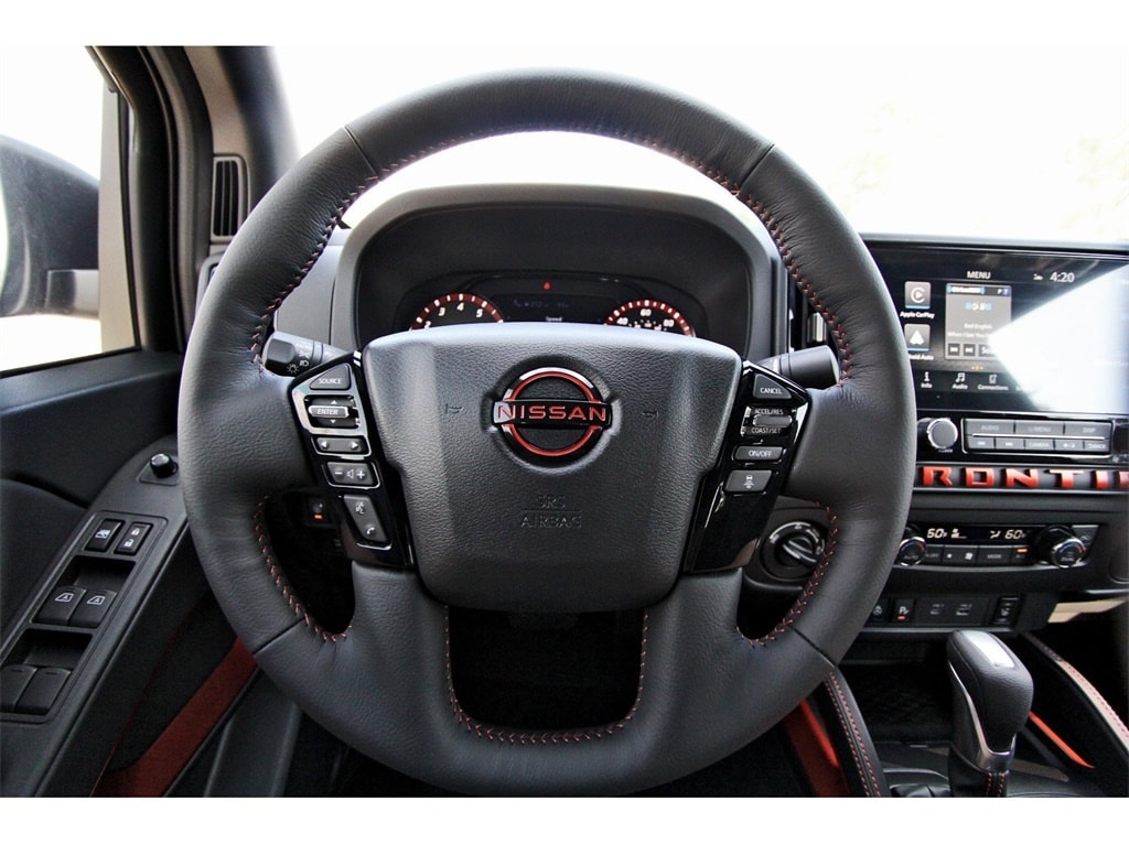 South Houston Nissan is proud to present you with another True Market Priced Vehicle. This 2026 Nissan Frontier PRO-4X is loaded with the following Factory Options: 4WD PRO-4X Convenience Package, Tow Package (T11), 4WD, 17" Painted Alloy Wheels, 3.692 Axle Ratio, 4-Wheel Disc Brakes, 6 Speakers, ABS brakes, Air Conditioning, Alloy wheels, AM/FM radio: SiriusXM, Anti-whiplash front head restraints, Auto High-beam Headlights, Automatic temperature control, Blind Spot Warning, Brake assist, Bumpers: body-color, Delay-off headlights, Driver door bin, Driver vanity mirror, Dual front impact airbags, Dual front side impact airbags, Electronic Stability Control, Electronic Tailgate Lock, Emergency communication system, Essentials Kit, Front anti-roll bar, Front Bucket Seats, Front Center Armrest, Front dual zone A/C, Front fog lights, Front reading lights, Front wheel independent suspension, Fully automatic headlights, Heated Front Bucket Seats, Heated front seats, Heated steering wheel, Illuminated entry, Knee airbag, Leather steering wheel, Low tire pressure warning, Mud Flaps, Occupant sensing airbag, Off-Road Style Step Rails, Overhead airbag, Overhead console, Panic alarm, Passenger door bin, Passenger vanity mirror, Power door mirrors, Power driver seat, Power passenger seat, Power steering, Power windows, Premium Paint, PRO Embroidered Premium Cloth Seat Trim, PRO-4X Carpeted Floor Mats, Radio data system, Radio: SXM/AM/FM/AUX/USB Audio System, Rear anti-roll bar, Rear seat center armrest, Rear side impact airbag, Rear step bumper, Remote keyless entry, Security system, Speed control, Speed-sensing steering, Split folding rear seat, Steering wheel mounted audio controls, Tachometer, Telescoping steering wheel, Tilt steering wheel, Traction control, Trip computer, Variably intermittent wipers, Voltmeter, and Wireless Apple CarPlay/Wireless Android Auto!!