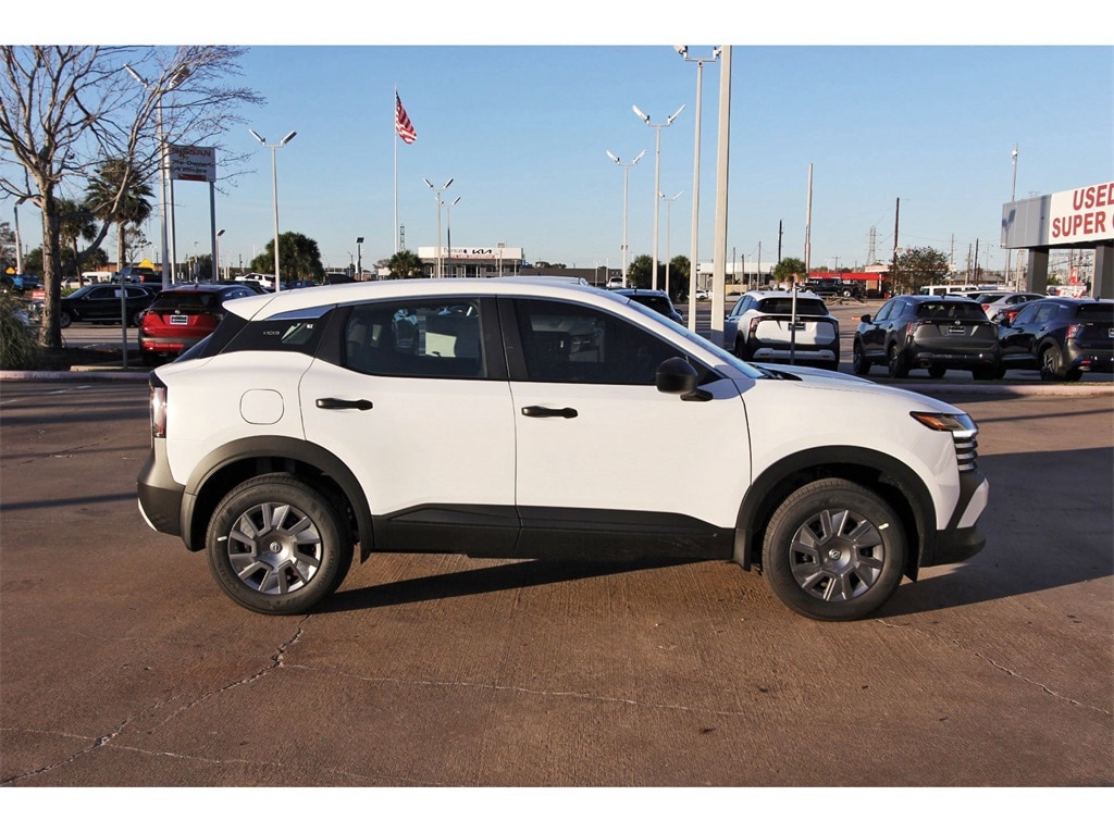 South Houston Nissan is proud to present you with another True Market Priced Vehicle. This 2026 Nissan Kicks S is loaded with the following Factory Options: 16" Steel Wheels w/Full Covers, 4 Speakers, 4-Wheel Disc Brakes, ABS brakes, Air Conditioning, AM/FM radio, Auto High-beam Headlights, Blind Spot Warning, Brake assist, Bumpers: body-color, Cloth Seat Trim, Driver door bin, Driver vanity mirror, Driver's Seat Mounted Armrest, Dual front impact airbags, Dual front side impact airbags, Electronic Stability Control, Emergency communication system, Exterior Parking Camera Rear, Front anti-roll bar, Front Bucket Seats, Front reading lights, Front wheel independent suspension, Fully automatic headlights, Illuminated entry, Knee airbag, Low tire pressure warning, NissanConnect featuring Apple CarPlay and Android Auto, Occupant sensing airbag, Outside temperature display, Overhead airbag, Panic alarm, Passenger door bin, Passenger vanity mirror, Power door mirrors, Power steering, Power windows, Radio data system, Radio: AM/FM/SiriusXM Audio System, Rear anti-roll bar, Rear reading lights, Rear side impact airbag, Rear window defroster, Rear window wiper, Remote keyless entry, Security system, Speed control, Speed-sensing steering, Split folding rear seat, Spoiler, Sport steering wheel, Steering wheel mounted audio controls, Tachometer, Telescoping steering wheel, Tilt steering wheel, Traction control, Trip computer, and Variably intermittent wipers!!