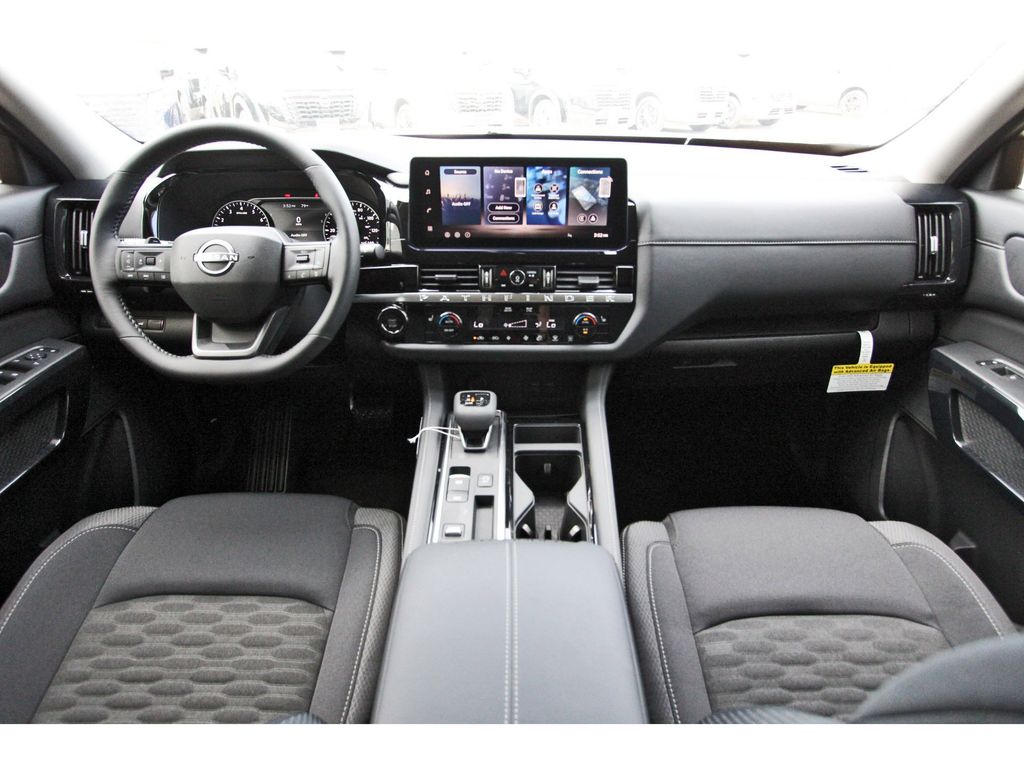 Central Houston Nissan is proud to present you with another True Market Priced Vehicle. This 2026 Nissan Pathfinder SV is loaded with the following Factory Options: 18" Painted Alloy Wheels, 3rd row seats: bench, 4-Piece Black Splash Guards, 4-Wheel Disc Brakes, 6 Speakers, ABS brakes, Air Conditioning, Alloy wheels, AM/FM radio: SiriusXM w/360L, Auto High-beam Headlights, Automatic temperature control, Bench Seat Carpeted Floor Mats, Brake assist, Bumpers: body-color, Cloth Seating Surfaces, Delay-off headlights, Driver door bin, Driver vanity mirror, Dual front impact airbags, Dual front side impact airbags, Electronic Stability Control, Emergency communication system: NissanConnect Services, Four wheel independent suspension, Front anti-roll bar, Front Bucket Seats, Front Center Armrest, Front dual zone A/C, Front reading lights, Fully automatic headlights, Garage door transmitter: myQ Connected Garage, Heated door mirrors, Heated Front Bucket Seats, Heated front seats, Illuminated entry, Knee airbag, Low tire pressure warning, Nissan USB Charging Cable Set, NissanConnect featuring Apple CarPlay and Android Auto, Occupant sensing airbag, Outside temperature display, Overhead airbag, Overhead console, Panic alarm, Passenger door bin, Passenger vanity mirror, Power door mirrors, Power driver seat, Power Liftgate, Power steering, Power windows, Radio data system, Radio: AM/FM Audio System with NissanConnect, Rear air conditioning, Rear anti-roll bar, Rear reading lights, Rear seat center armrest, Rear side impact airbag, Rear window defroster, Rear window wiper, Reclining 3rd row seat, Remote keyless entry, Security system, Speed control, Speed-sensing steering, Split folding rear seat, Spoiler, Steering wheel mounted audio controls, Tachometer, Telescoping steering wheel, Tilt steering wheel, Traction control, Trip computer, and Variably intermittent wipers!!