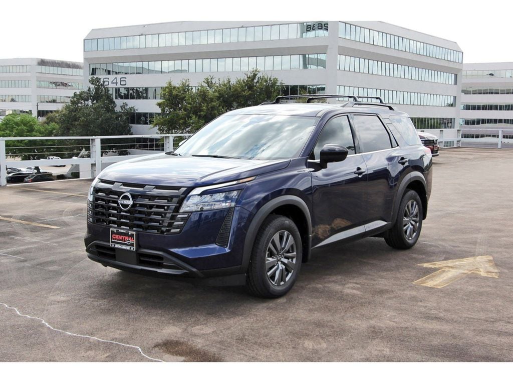 Central Houston Nissan is proud to present you with another True Market Priced Vehicle. This 2026 Nissan Pathfinder SV is loaded with the following Factory Options: 18" Painted Alloy Wheels, 3rd row seats: bench, 4-Piece Black Splash Guards, 4-Wheel Disc Brakes, 6 Speakers, ABS brakes, Air Conditioning, Alloy wheels, AM/FM radio: SiriusXM w/360L, Auto High-beam Headlights, Automatic temperature control, Bench Seat Carpeted Floor Mats, Brake assist, Bumpers: body-color, Cloth Seating Surfaces, Cross Bars, Delay-off headlights, Driver door bin, Driver vanity mirror, Dual front impact airbags, Dual front side impact airbags, Electronic Stability Control, Emergency communication system: NissanConnect Services, Four wheel independent suspension, Front anti-roll bar, Front Bucket Seats, Front Center Armrest, Front dual zone A/C, Front reading lights, Fully automatic headlights, Garage door transmitter: myQ Connected Garage, Heated door mirrors, Heated Front Bucket Seats, Heated front seats, Illuminated entry, Knee airbag, Low tire pressure warning, Nissan USB Charging Cable Set, NissanConnect featuring Apple CarPlay and Android Auto, Occupant sensing airbag, Outside temperature display, Overhead airbag, Overhead console, Panic alarm, Passenger door bin, Passenger vanity mirror, Power door mirrors, Power driver seat, Power Liftgate, Power steering, Power windows, Radio data system, Radio: AM/FM Audio System with NissanConnect, Rear air conditioning, Rear anti-roll bar, Rear reading lights, Rear seat center armrest, Rear side impact airbag, Rear window defroster, Rear window wiper, Reclining 3rd row seat, Remote keyless entry, Security system, Speed control, Speed-sensing steering, Split folding rear seat, Spoiler, Steering wheel mounted audio controls, Tachometer, Telescoping steering wheel, Tilt steering wheel, Traction control, Trip computer, and Variably intermittent wipers!!
