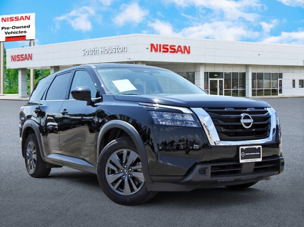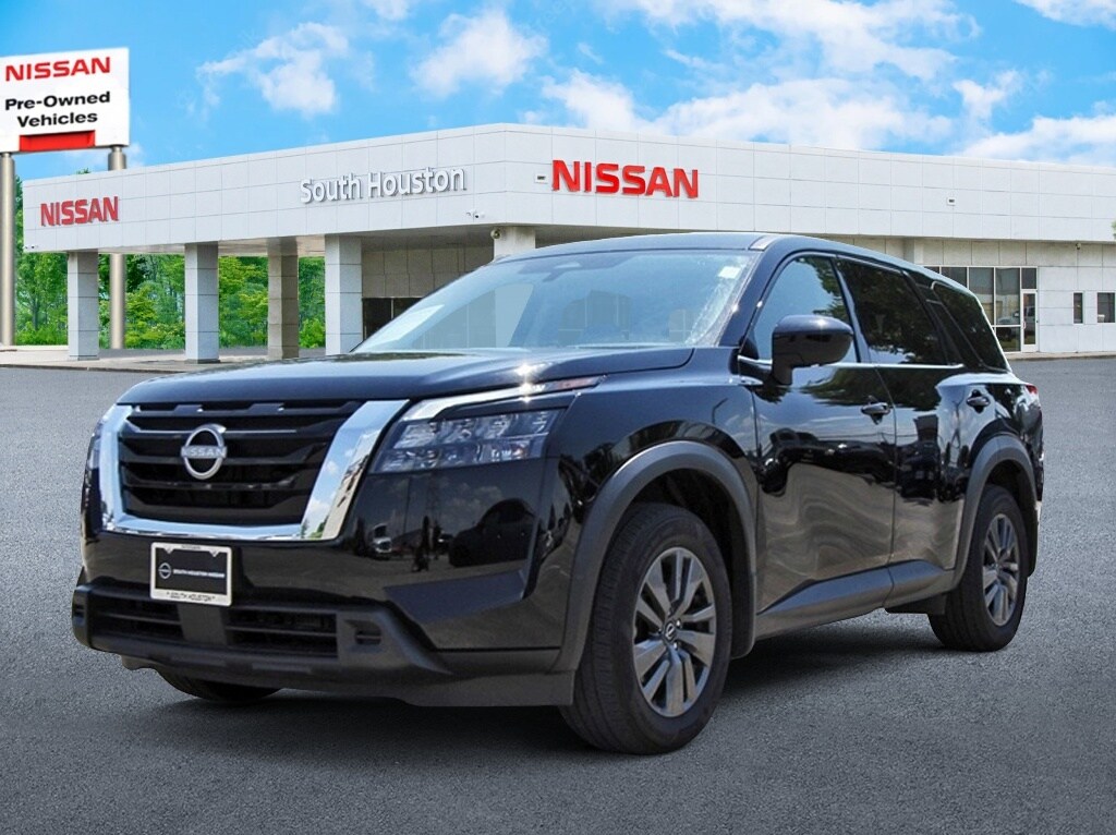 South Houston Nissan is proud to present you with another True Market Priced Pre-Owned Vehicle. This 2024 Nissan Pathfinder S is loaded with the following Factory Options: 3rd row seats: bench, 4-Wheel Disc Brakes, 6 Speakers, ABS brakes, Air Conditioning, Alloy wheels, AM/FM radio: SiriusXM, Auto High-beam Headlights, Automatic temperature control, Axle Ratio: 4.334, Bench Seat Carpeted Floor Mats (Set of 4), Black Splash Guards (Set of 4), Blind Spot Warning, Brake assist, Bumpers: body-color, Cloth Seating Surfaces, Delay-off headlights, Driver door bin, Driver vanity mirror, Dual front impact airbags, Dual front side impact airbags, Electronic Stability Control, Four wheel independent suspension, Front anti-roll bar, Front Bucket Seats, Front Center Armrest, Front dual zone A/C, Front reading lights, Fully automatic headlights, Illuminated entry, Knee airbag, Low tire pressure warning, NissanConnect featuring Apple CarPlay and Android Auto, Occupant sensing airbag, Outside temperature display, Overhead airbag, Overhead console, Panic alarm, Passenger door bin, Passenger vanity mirror, Power door mirrors, Power steering, Power windows, Radio data system, Radio: AM/FM Audio System, Rear air conditioning, Rear anti-roll bar, Rear Parking Sensors, Rear reading lights, Rear side impact airbag, Rear window defroster, Rear window wiper, Reclining 3rd row seat, Remote keyless entry, Security system, Speed control, Speed-sensing steering, Split folding rear seat, Spoiler, Steering wheel mounted audio controls, Tachometer, Telescoping steering wheel, Tilt steering wheel, Traction control, Trip computer, Variably intermittent wipers, and Wheels: 18" x 8J Painted Alloy!!