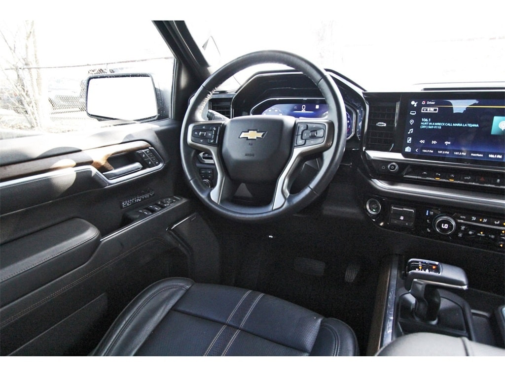 South Houston Nissan is proud to present you with another True Market Priced Pre-Owned Vehicle. This 2023 Chevrolet Silverado 1500 High Country is loaded with the following Factory Options: 10-Speed Automatic, 4WD, and Jet Black Leather High Capacity Suspension Package, High Country Premium Package (All-Weather Floor Liner (LPO), Power Sunroof, and Wheels: 22" x 9" Painted Aluminum), Preferred Equipment Group 3LZ (10-Way Power Driver Seat w/Lumbar, 10-Way Power Passenger Seat Adjuster w/Lumbar, 12.3" Multicolor Reconfigurable Digital Display, 120-Volt Bed Mounted Power Outlet, 120-Volt Instrument Panel Power Outlet, 2 USB Data Ports, 2nd Row Heated Outboard Seats, Auto-Dimming Inside Rear-View Mirror, Auto-Locking Rear Differential, Bed View Camera, Bluetooth® For Phone, Body-Color Painted Mirror Caps, Chevrolet Connected Access Capable, Chevytec Spray-On Black Bedliner, Chrome Assist Steps, Chrome Recovery Hooks, Color-Keyed Carpeting Floor Covering, Compass, Deep-Tinted Glass, Driver Memory, Dual Exhaust w/Polished Outlets, Dual Rear USB Ports (Charge Only), Electric Rear-Window Defogger, Electrical Steering Column Lock, Electronic Cruise Control, Floor Mounted Center Console, Front Carpeted Floor Mats, Front LED Fog Lamps, Front Rainsensing Wipers, HD Surround Vision, Heated Driver & Front Outboard Passenger Seats, Heated Steering Wheel, Hitch Guidance w/Hitch View, Integrated Trailer Brake Controller, Keyless Open & Start, LED Cargo Area Lighting, OnStar & Chevrolet Connected Services Capable, Outside Heated Power-Adjustable Mirrors, Perimeter Lighting, Power Front Passenger Windows w/Express Up/Down, Power Front Windows w/Driver Express Up/Down, Power Rear Windows w/Express Down, Power Sliding Rear Window w/Rear Defogger, Power Tailgate, Power Tilt & Telescoping Steering Column, Rear Carpeted Floor Mats, Rear Cross Traffic Alert-Braking, Rear Pedestrian Alert, Rear Wheelhouse Liners, Remote Vehicle Starter System, Safety Alert Seat, SiriusXM w/360L, Standard Tailgate, Steering Wheel Audio Controls, Theft Deterrent System (Unauthorized Entry), Trailer Camera Provisions, Trailer Side Blind Zone Alert, Trailering App, Ultrasonic Front & Rear Park Assist, Universal Home Remote, Ventilated Driver & Front Passenger Seats, Wi-Fi Hot Spot Capable, Wireless Charging, Wireless Phone Projection, and Wrapped Steering Wheel), Technology Package (15" Diagonal Multicolor Head-Up Display, Adaptive Cruise Control, and Rear Camera Mirror), Trailering Package (Hitch Guidance), Up-Level Rear Seat w/Storage Package, 10-Speed Automatic, 4WD, Jet Black Leather, 170 Amp Alternator, 3.23 Rear Axle Ratio, 4-Wheel Disc Brakes, 7 Speakers, ABS brakes, Adaptive Ride Control Suspension, Air Conditioning, Alloy wheels, AM/FM radio: SiriusXM with 360L, Apple CarPlay/Android Auto, Auto High-beam Headlights, Auto-dimming door mirrors, Auto-dimming Rear-View mirror, Automatic Emergency Braking, Automatic temperature control, Bodyside moldings, Brake assist, Bumpers: body-color, Delay-off headlights, Driver door bin, Driver vanity mirror, Dual front impact airbags, Dual front side impact airbags, Electronic Stability Control, Electronic Transmission Range Selector Shifter, Following Distance Indicator, Forward Collision Alert, Front anti-roll bar, Front Bucket Seats, Front Center Armrest, Front dual zone A/C, Front fog lights, Front License Plate Kit, Front Pedestrian Braking, Front reading lights, Front wheel independent suspension, Fully automatic headlights, Garage door transmitter, Genuine wood console insert, Genuine wood dashboard insert, Genuine wood door panel insert, Heated door mirrors, Heated front seats, Heated rear seats, Heated steering wheel, Illuminated entry, IntelliBeam Automatic High Beam On/Off, Lane Keep Assist w/Lane Departure Warning, Low tire pressure warning, Memory seat, Not Equipped w/Steering Column Lock, Occupant sensing airbag, Outside temperature display, Overhead airbag, Overhead console, Panic alarm, Passenger door bin, Pas