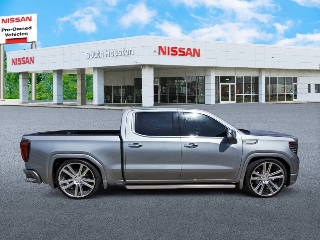 South Houston Nissan is proud to present you with another True Market Priced Pre-Owned Vehicle. This 2023 GMC Sierra 1500 Denali is loaded with the following Factory Options: 10-Speed Automatic, 4WD, and Jet Black Leather Denali Reserve Package (GMC MultiPro Power Steps, Power Sunroof, Wheel Locks (Set of 4) (LPO), and Wheels: 22" x 9" Painted Aluminum), Preferred Equipment Group 5SA (120-Volt Bed Mounted Power Outlet, 120-Volt Instrument Panel Power Outlet, 170 Amp Alternator, 2 Charge/Data USB Ports Inside Center Console, 2 Type-C Charge-Only Rear USB Ports, 2 USB Ports, Auto-Locking Rear Differential, Auxiliary External Transmission Oil Cooler, Bed View Camera, Chrome Header w/Signature Denali Chrome Grille, Chrome Recovery Hooks, Chrome Wheel To Wheel Assist Steps, Color-Keyed Carpeting Floor Covering, Compass, Deep-Tinted Glass, Electric Rear-Window Defogger, Electrical Steering Column Lock, Floor-Mounted Center Console, Front Rainsensing Wipers, GMC Connected Access Capable, HD Surround Vision, Heated 2nd Row Outboard Seats, Heated Driver & Front Outboard Passenger Seating, Heavy-Duty Air Filter, Hill Descent Control, Hitch Guidance w/Hitch View, In-Vehicle Trailering App, Integrated Trailer Brake Controller, Keyless Open & Start, LED Cargo Area Lighting, OnStar & GMC Connected Services Capable, Perimeter Lighting, Power Door Locks, Power Front Passenger Windows w/Express Up/Down, Power Front Windows w/Driver Express Up/Down, Power Rake & Telescoping Steering Column, Power Rear Windows w/Express Down, Power Sliding Rear Window w/Rear Defogger, Premium Bose 7-Speaker Sound System, Push Button Start, Rear Cross Traffic Braking, Rear Pedestrian Detection, Rear Wheelhouse Liners, Remote Vehicle Starter System, SiriusXM w/360L, Spray-On Pickup Bed Liner w/Denali Logo, Steering Wheel Audio Controls, Theft Deterrent System (Unauthorized Entry), Trailer Camera Provisions, Trailer Side Blind Zone Alert, Ultrasonic Front & Rear Park Assist, Universal Home Remote, Ventilated Driver & Front Passenger Seats, Wi-Fi Hotspot Capable, Wireless Charging, and Wireless Phone Projection), Technology Package (Adaptive Cruise Control, Multicolor 15" Diagonal Head-Up Display, and Rear Camera Mirror), Trailering Package (Hitch Guidance), 10-Speed Automatic, 4WD, Jet Black Leather, 10-Way Power Driver Seat Adjuster w/Lumbar, 10-Way Power Passenger Seat Adjuster w/Lumbar, 220 Amp Alternator, 3.23 Rear Axle Ratio, 4-Wheel Disc Brakes, 7 Speakers, ABS brakes, Adaptive suspension, Air Conditioning, Alloy wheels, AM/FM radio, Apple CarPlay/Android Auto, Auto High-beam Headlights, Auto-dimming door mirrors, Auto-dimming Rear-View mirror, Automatic Emergency Braking, Automatic temperature control, Brake assist, Buckle to Drive, Bumpers: body-color, Delay-off headlights, Denali Premium Suspension w/Adaptive Ride Control, Driver door bin, Driver Memory, Driver vanity mirror, Dual front impact airbags, Dual front side impact airbags, Electronic Stability Control, Emergency communication system: OnStar and GMC connected services capable, Engine Block Heater, Following Distance Indicator, Forge Perforated Leather Seat Trim, Forward Collision Alert, Front anti-roll bar, Front Bucket Seats, Front Center Armrest, Front dual zone A/C, Front fog lights, Front License Plate Kit, Front Pedestrian Braking, Front reading lights, Front wheel independent suspension, Fully automatic headlights, Garage door transmitter, Genuine wood console insert, Genuine wood dashboard insert, Genuine wood door panel insert, Heated door mirrors, Heated front seats, Heated rear seats, Heated steering wheel, Illuminated entry, IntelliBeam Automatic High Beam On/Off, Lane Keep Assist w/Lane Departure Warning, Low tire pressure warning, Memory seat, Navigation System, Not Equipped w/Steering Column Lock, Occupant sensing airbag, Outside temperature display, Overhead airbag, Overhead console, Panic alarm, Passenger door bin, Passenger vanity mirror, Power door mirrors, Power driver seat, Po