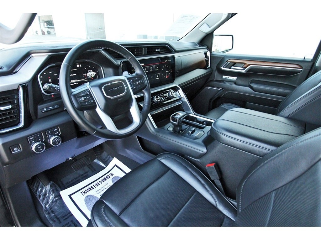Finished in Onyx Black with a Jet Black leather interior, this Denali offers a refined cabin, advanced safety features, and all the comfort you expect from GMCâs flagship pickup line. 4WD ensures confidence in all weather conditions while maintaining a smooth, composed ride.