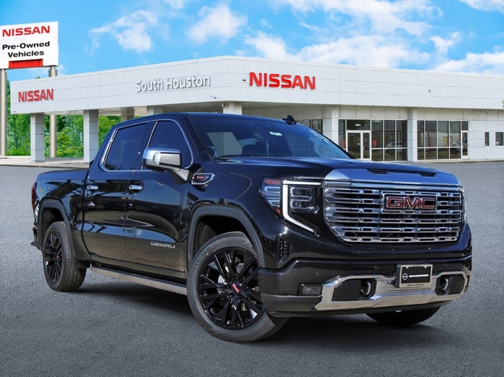 South Houston Nissan is proud to present you with another True Market Priced Pre-Owned Vehicle. This 2023 GMC Sierra 1500 Denali is loaded with the following Factory Options: 10-Speed Automatic, 4WD, and Jet Black Leather Preferred Equipment Group 5SA (120-Volt Bed Mounted Power Outlet, 120-Volt Instrument Panel Power Outlet, 170 Amp Alternator, 2 Charge/Data USB Ports Inside Center Console, 2 Type-C Charge-Only Rear USB Ports, 2 USB Ports, Auto-Locking Rear Differential, Auxiliary External Transmission Oil Cooler, Bed View Camera, Chrome Header w/Signature Denali Chrome Grille, Chrome Recovery Hooks, Chrome Wheel To Wheel Assist Steps, Color-Keyed Carpeting Floor Covering, Compass, Deep-Tinted Glass, Electric Rear-Window Defogger, Electrical Steering Column Lock, Floor-Mounted Center Console, Front Rainsensing Wipers, GMC Connected Access Capable, HD Surround Vision, Heated 2nd Row Outboard Seats, Heated Driver & Front Outboard Passenger Seating, Heavy-Duty Air Filter, Hill Descent Control, Hitch Guidance w/Hitch View, In-Vehicle Trailering App, Integrated Trailer Brake Controller, Keyless Open & Start, LED Cargo Area Lighting, OnStar & GMC Connected Services Capable, Perimeter Lighting, Power Door Locks, Power Front Passenger Windows w/Express Up/Down, Power Front Windows w/Driver Express Up/Down, Power Rake & Telescoping Steering Column, Power Rear Windows w/Express Down, Power Sliding Rear Window w/Rear Defogger, Premium Bose 7-Speaker Sound System, Push Button Start, Rear Cross Traffic Braking, Rear Pedestrian Detection, Rear Wheelhouse Liners, Remote Vehicle Starter System, SiriusXM w/360L, Spray-On Pickup Bed Liner w/Denali Logo, Steering Wheel Audio Controls, Theft Deterrent System (Unauthorized Entry), Trailer Camera Provisions, Trailer Side Blind Zone Alert, Ultrasonic Front & Rear Park Assist, Universal Home Remote, Ventilated Driver & Front Passenger Seats, Wi-Fi Hotspot Capable, Wireless Charging, and Wireless Phone Projection), Technology Package (Adaptive Cruise Control, Multicolor 15" Diagonal Head-Up Display, and Rear Camera Mirror), Trailering Package (Hitch Guidance), 10-Speed Automatic, 4WD, Jet Black Leather, 10-Way Power Driver Seat Adjuster w/Lumbar, 10-Way Power Passenger Seat Adjuster w/Lumbar, 3.23 Rear Axle Ratio, 4-Wheel Disc Brakes, 7 Speakers, ABS brakes, Adaptive suspension, Air Conditioning, Alloy wheels, AM/FM radio, Apple CarPlay/Android Auto, Auto High-beam Headlights, Auto-dimming door mirrors, Auto-dimming Rear-View mirror, Automatic Emergency Braking, Automatic temperature control, Brake assist, Buckle to Drive, Bumpers: body-color, Delay-off headlights, Denali Premium Suspension w/Adaptive Ride Control, Driver door bin, Driver Memory, Driver vanity mirror, Dual front impact airbags, Dual front side impact airbags, Electronic Stability Control, Emergency communication system: OnStar and GMC connected services capable, Following Distance Indicator, Forge Perforated Leather Seat Trim, Forward Collision Alert, Front anti-roll bar, Front Bucket Seats, Front Center Armrest, Front dual zone A/C, Front fog lights, Front License Plate Kit, Front Pedestrian Braking, Front reading lights, Front wheel independent suspension, Fully automatic headlights, Garage door transmitter, Genuine wood console insert, Genuine wood dashboard insert, Genuine wood door panel insert, GMC MultiPro Power Steps, Heated door mirrors, Heated front seats, Heated rear seats, Heated steering wheel, Illuminated entry, IntelliBeam Automatic High Beam On/Off, Lane Keep Assist w/Lane Departure Warning, Low tire pressure warning, Memory seat, Navigation System, Not Equipped w/Steering Column Lock, Occupant sensing airbag, Outside temperature display, Overhead airbag, Overhead console, Panic alarm, Passenger door bin, Passenger vanity mirror, Power door mirrors, Power driver seat, Power passenger seat, Power steering, Power Sunroof, Power windows, Premium audio system: GMC Infotainment System, Radio data system, Radio: Premium GMC