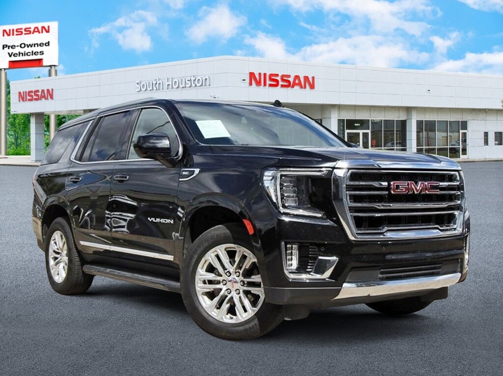 South Houston Nissan is proud to present you with another True Market Priced Pre-Owned Vehicle. This 2024 GMC Yukon SLT is loaded with the following Factory Options: 4WD Preferred Equipment Group 4SA (12-Way Power Seat Adjusters, 2 Presets For Power Driver Seat, Bose 9-Speaker Stereo Audio System Feature, Bright Chrome Bodyside Moldings, Bright Front & Rear Door Sill Plates, Chrome Door Handles w/Body-Color Strip, Hands-Free Power Programmable Rear Liftgate, Heated Driver & Front Passenger Seats, Inside Rear-View Auto-Dimming Mirror, Perforated Heated & Ventilated Dr & Frt Pass Seats, Safety Alert Seat, Universal Home Remote, and Wireless Charging), 4WD, 3.23 Rear Axle Ratio, 3rd row seats: split-bench, 4-Wheel Disc Brakes, 9 Speakers, ABS brakes, Air Conditioning, Alloy wheels, AM/FM radio: SiriusXM with 360L, AM/FM Stereo, Apple CarPlay/Android Auto, Auto High-beam Headlights, Auto-dimming Rear-View mirror, Automatic Emergency Braking, Automatic temperature control, Bodyside moldings, Brake assist, Bumpers: body-color, Compass, Delay-off headlights, Deleted 3 Years of OnStar Remote Access, Driver door bin, Driver vanity mirror, Dual front impact airbags, Dual front side impact airbags, Electronic Stability Control, Emergency communication system: OnStar and GMC connected services capable, Following Distance Indicator, Forward Collision Alert, Four wheel independent suspension, Front & Rear Park Assist, Front anti-roll bar, Front Bucket Seats, Front Center Armrest, Front dual zone A/C, Front fog lights, Front Pedestrian Braking, Front reading lights, Fully automatic headlights, Garage door transmitter, Heated door mirrors, Heated front seats, Illuminated entry, IntelliBeam Automatic High Beam On/Off, Lane Change Alert w/Side Blind Zone Alert, Lane Keep Assist w/Lane Departure Warning, Low tire pressure warning, Memory seat, Navigation System, Occupant sensing airbag, Outside temperature display, Overhead airbag, Overhead console, Panic alarm, Passenger door bin, Passenger vanity mirror, Perforated Leather-Appointed Seating, Power door mirrors, Power driver seat, Power Liftgate, Power passenger seat, Power steering, Power windows, Premium Smooth Ride Suspension, Rain sensing wipers, Rear air conditioning, Rear anti-roll bar, Rear Cross Traffic Alert, Rear reading lights, Rear seat center armrest, Rear window defroster, Rear window wiper, Remote keyless entry, Roof rack: rails only, Security system, SiriusXM w/360L, Speed control, Speed-sensing steering, Split folding rear seat, Spoiler, Steering wheel mounted audio controls, Tachometer, Telescoping steering wheel, Tilt steering wheel, Traction control, Trip computer, Variably intermittent wipers, Ventilated front seats, Voltmeter, and Wheels: 20" x 9" 6-Spoke Polished Aluminum!!