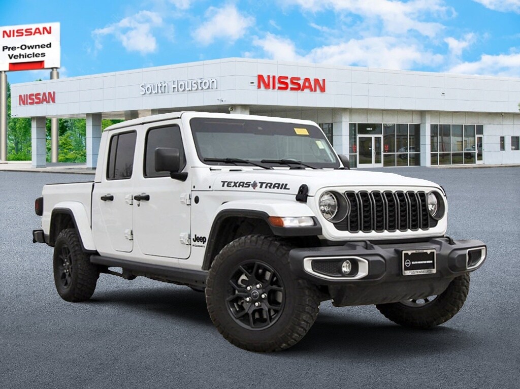 South Houston Nissan is proud to present you with another True Market Priced Pre-Owned Vehicle. This 2025 Jeep Gladiator Texas Trail is loaded with the following Factory Options: Convenience Group (Corning Gorilla Glass, Daytime Running Lamp System, Emergency/Assistance Call, Front Door Locks 2-Door Passive Entry, Heated Front Seats, Heated Steering Wheel, Remote Start System, and Universal Garage Door Opener), Quick Order Package 24J Texas Trail (97 MPH Vehicle Max Speed Calibration, Advanced Brake Assist, Automatic Headlamps, Body Color 3-Piece Hard Top, Body Color Fender Flares (2-Piece), Deep Tint Sunscreen Windows, Freedom Panel Storage Bag, Full Length Floor Console Premium Armrest, Full Speed Forward Collision Warning Plus, Hard Seat Back, Integrated Radar Camera Module (IRCM), Leather Wrapped Park Brake Handle, Leather Wrapped Shift Knob, Power 4-Way Driver Lumbar Adjust, Power 4-Way Passenger Lumbar Adjust, Power Adjust 8-Way Driver Seat, Power Adjust 8-Way Front Passenger Seat, Power Heated Mirrors, Premium Door Trim Panel, Premium McKinley Trimmed Seats, Premium Wrapped Steering Wheel, Rear Armrest w/Cupholder Seat, Rear Sliding Window, Rear Window Defroster, Security Alarm, Sun Visors w/Illuminated Vanity Mirrors, Texas Trail, Texas Trail Tailgate & Hood Decals, Wheels: 17" x 7.5" Painted Black, and Willys Suspension), 110 MPH Vehicle Max Speed Calibration, 12.3" Touchscreen Display, 3.73 Rear Axle Ratio, 4-Wheel Disc Brakes, 4G LTE Wi-Fi Hot Spot, 8 Speakers, ABS brakes, Air Conditioning, Alexa Built-In, AM/FM radio: SiriusXM, Apple CarPlay, Apple CarPlay/Android Auto, Brake assist, Cloth Low-Back Bucket Seats, Compass, Connectivity - US/Canada, Delay-off headlights, Driver door bin, Driver vanity mirror, Dual front impact airbags, Dual front side impact airbags, Electronic Stability Control, Front anti-roll bar, Front Bucket Seats, Front Center Armrest w/Storage, Front fog lights, Front License Plate Bracket, Front reading lights, Google Android Auto, Illuminated entry, Integrated roll-over protection, Low tire pressure warning, MOPAR All-Weather Slush Mats, MOPAR Spray In Bedliner, Normal Duty Suspension, Occupant sensing airbag, Outside temperature display, Overhead airbag, Panic alarm, ParkView Rear Back-Up Camera, Passenger door bin, Passenger vanity mirror, Power steering, Power windows, Radio data system, Radio: Uconnect 5 w/12.3" Display, Rear anti-roll bar, Rear reading lights, Remote keyless entry, Speed control, Split folding rear seat, Steering wheel mounted audio controls, Tachometer, Telescoping steering wheel, Tilt steering wheel, Traction control, Trip computer, USB Host Flip, Variably intermittent wipers, Voltmeter, and Wheels: 17" x 7.5" Black Steel Styled!!