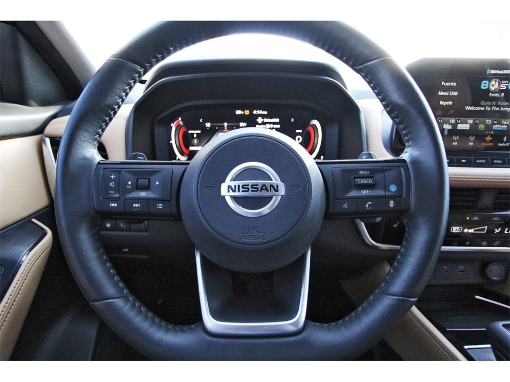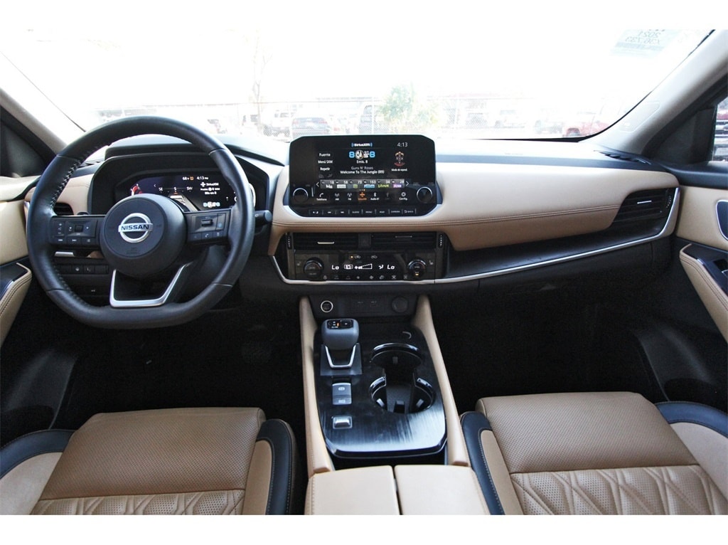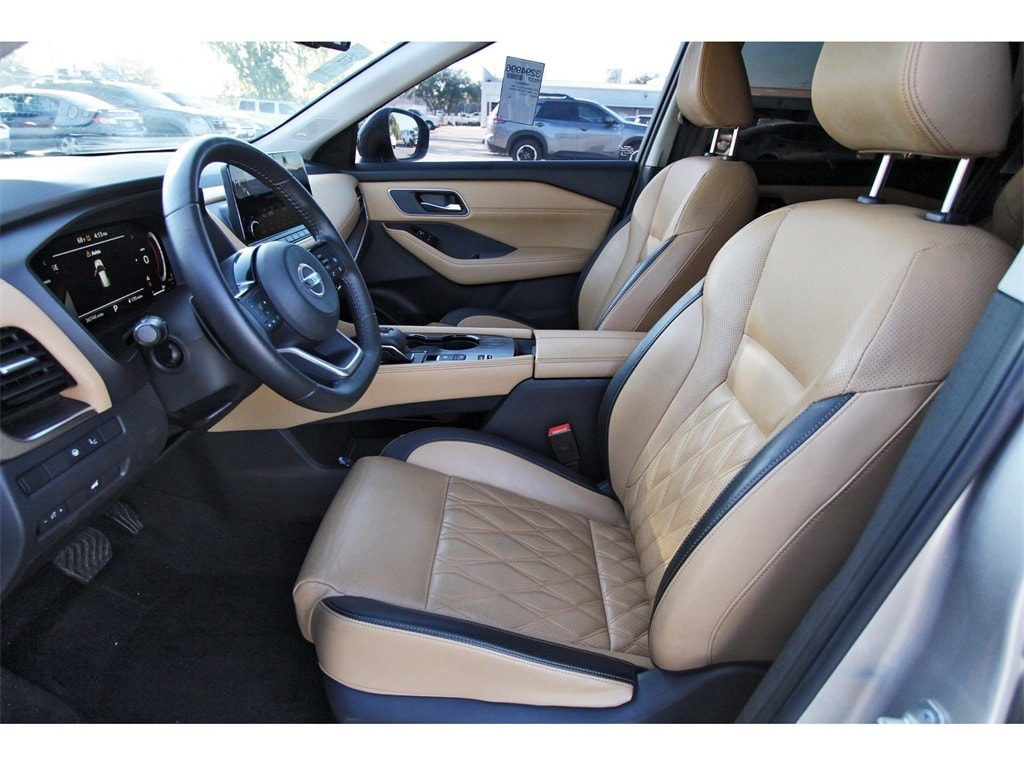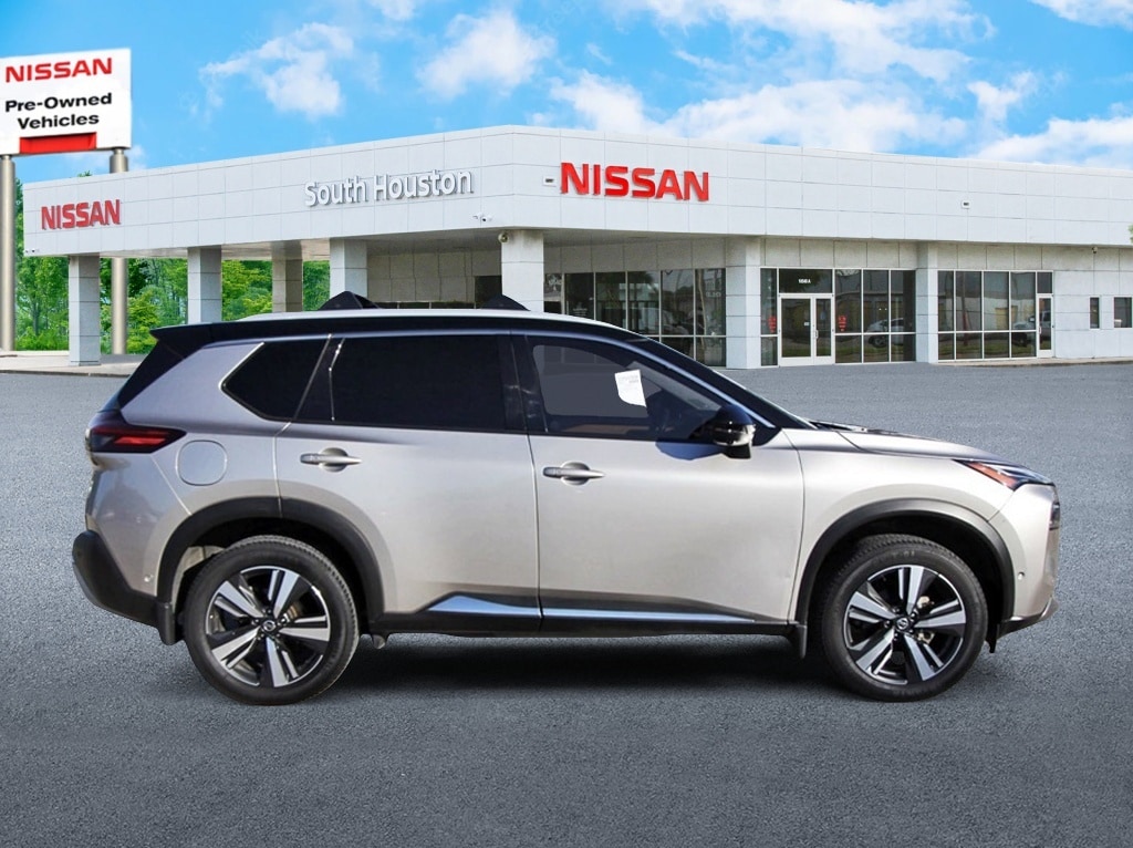 South Houston Nissan is proud to present you with another True Market Priced Pre-Owned Vehicle. This 2021 Nissan Rogue Platinum is loaded with the following Factory Options: 10 Speakers, 19" Aluminum Alloy Wheels, 4-Wheel Disc Brakes, 5.604 Axle Ratio, ABS brakes, Air Conditioning, Alloy wheels, AM/FM radio, Auto High-beam Headlights, Auto-dimming Rear-View mirror, Automatic temperature control, Black Splash Guards (Set of 4), Bose Premium Audio System, Brake assist, Bumpers: body-color, Chrome Rear Bumper Protector, Delay-off headlights, Driver door bin, Driver vanity mirror, Dual front impact airbags, Dual front side impact airbags, Electronic Stability Control, Emergency communication system: NissanConnect Services, Exterior Parking Camera Rear, External Ground Lighting, First Aid Kit, Floor Mats w/2-Piece Cargo Area Protector, Four wheel independent suspension, Front anti-roll bar, Front Bucket Seats, Front Center Armrest, Front dual zone A/C, Front fog lights, Front reading lights, Fully automatic headlights, Heads-Up Display, Heated door mirrors, Heated Front Bucket Seats, Heated front seats, Heated rear seats, Heated steering wheel, Illuminated entry, Illuminated Kick Plates, Interior Accent Lighting, Knee airbag, Leather steering wheel, Low tire pressure warning, Memory seat, Navigation system: NissanConnect Navigation, NissanConnect featuring Apple CarPlay and Android Auto, Occupant sensing airbag, Outside temperature display, Overhead airbag, Overhead console, Panic alarm, Passenger door bin, Passenger vanity mirror, Power door mirrors, Power driver seat, Power Liftgate, Power moonroof, Power passenger seat, Power steering, Power windows, Quilted Semi-Aniline Leather Seat Trim, Radio data system, Radio: AM/FM NissanConnect w/Navigation, Rear air conditioning, Rear anti-roll bar, Rear seat center armrest, Rear side impact airbag, Rear window defroster, Rear window wiper, Remote keyless entry, Roof rack: rails only, Security system, Speed control, Speed-Sensitive Wipers, Split folding rear seat, Spoiler, Steering wheel mounted audio controls, Tachometer, Telescoping steering wheel, Tilt steering wheel, Traction control, Trip computer, Turn signal indicator mirrors, and Variably intermittent wipers!!