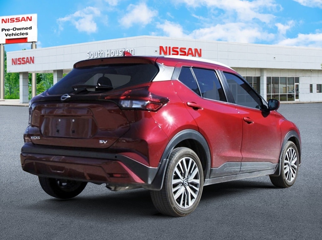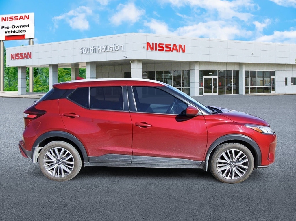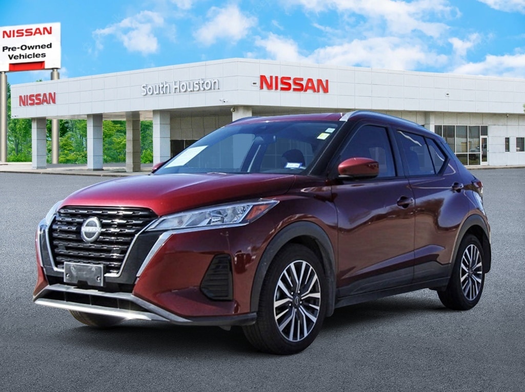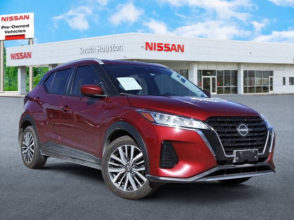 South Houston Nissan is proud to present you with another True Market Priced Pre-Owned Vehicle. This 2022 Nissan Kicks SV is loaded with the following Factory Options: 3.927 Axle Ratio, 4-Wheel Disc Brakes, 6 Speakers, ABS brakes, Air Conditioning, Alloy wheels, AM/FM radio: SiriusXM, Apple CarPlay/Android Auto, Auto High-beam Headlights, Automatic temperature control, Blind Spot Warning, Brake assist, Bumpers: body-color, Carpeted Floor Mats w/Cargo Mat, Cloth Seat Trim, Compass, Driver door bin, Driver vanity mirror, Dual front impact airbags, Dual front side impact airbags, Electronic Stability Control, Front anti-roll bar, Front Bucket Seats, Front Center Armrest, Front reading lights, Front wheel independent suspension, Fully automatic headlights, Heated door mirrors, Illuminated entry, Knee airbag, Low tire pressure warning, Occupant sensing airbag, Outside temperature display, Overhead airbag, Panic alarm, Passenger door bin, Passenger vanity mirror, Power door mirrors, Power steering, Power windows, Radio data system, Radio: AM/FM Audio System, Rear Parking Sensors, Rear reading lights, Rear side impact airbag, Rear window defroster, Rear window wiper, Remote keyless entry, Roof rack: rails only, Speed control, Splash Guards Grain (4 Piece), Split folding rear seat, Sport steering wheel, Steering wheel mounted audio controls, Tachometer, Telescoping steering wheel, Tilt steering wheel, Traction control, Trip computer, Variably intermittent wipers, and Wheels: 17" 5-Hole Alloy!!