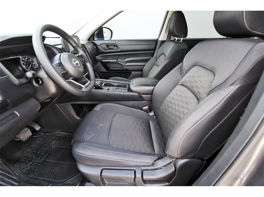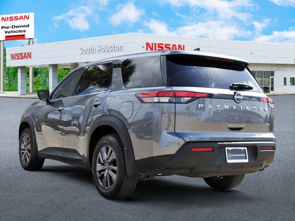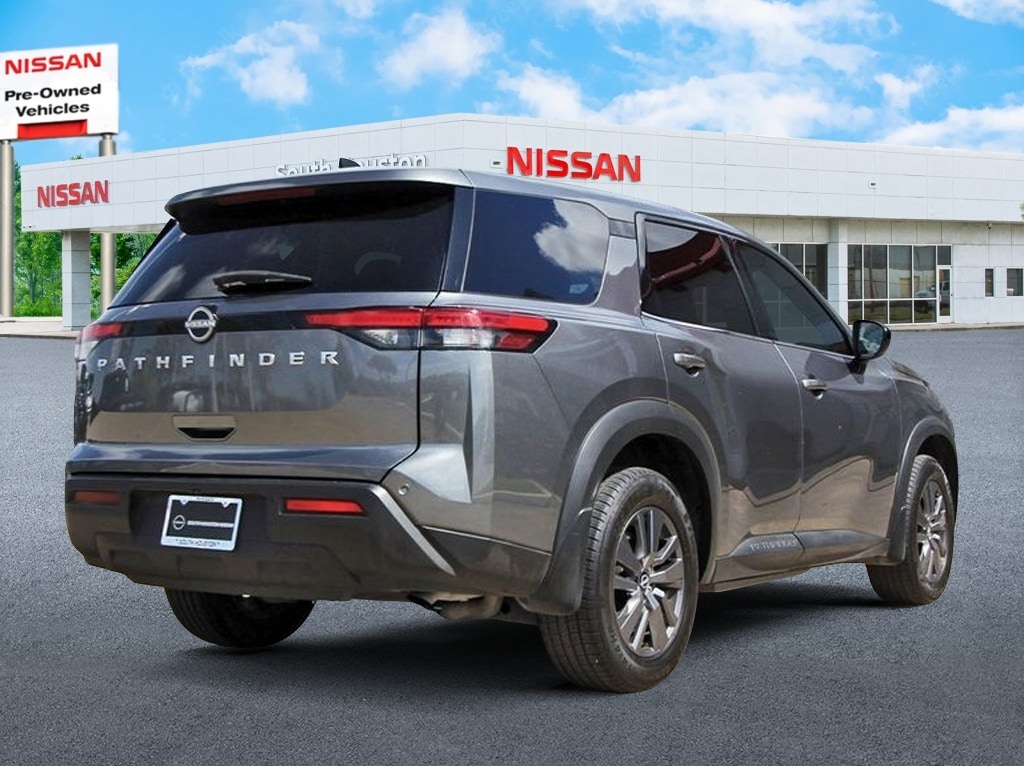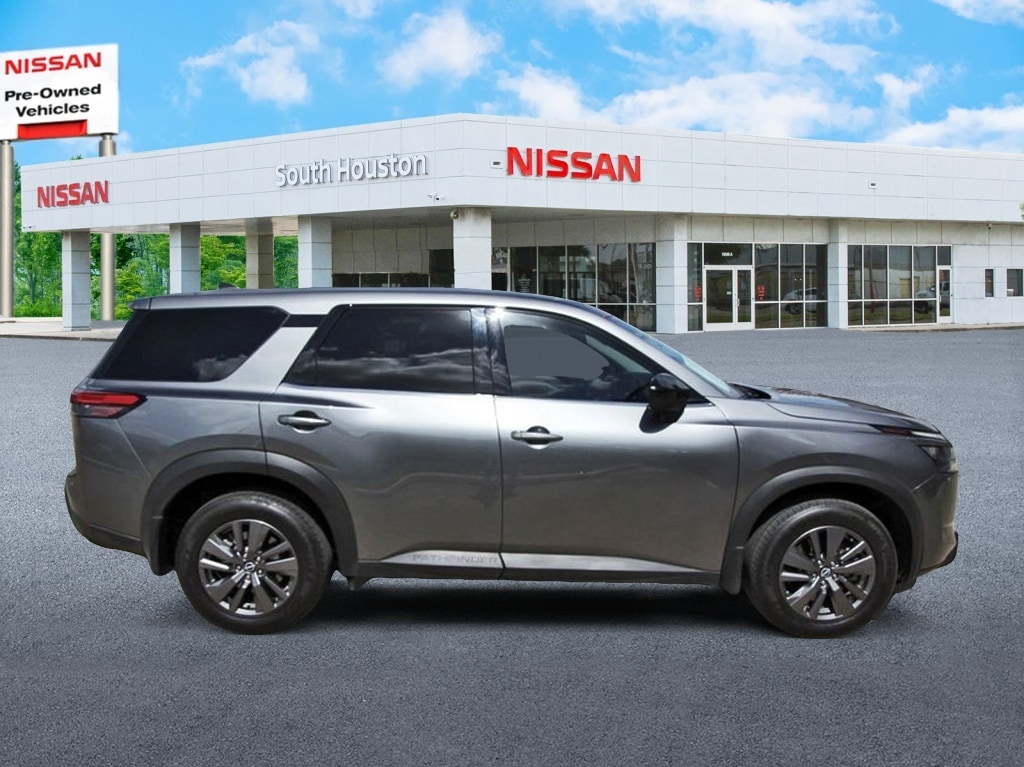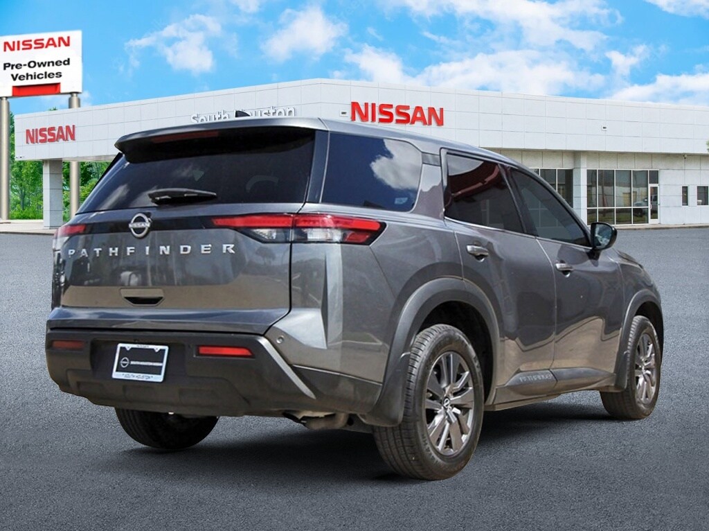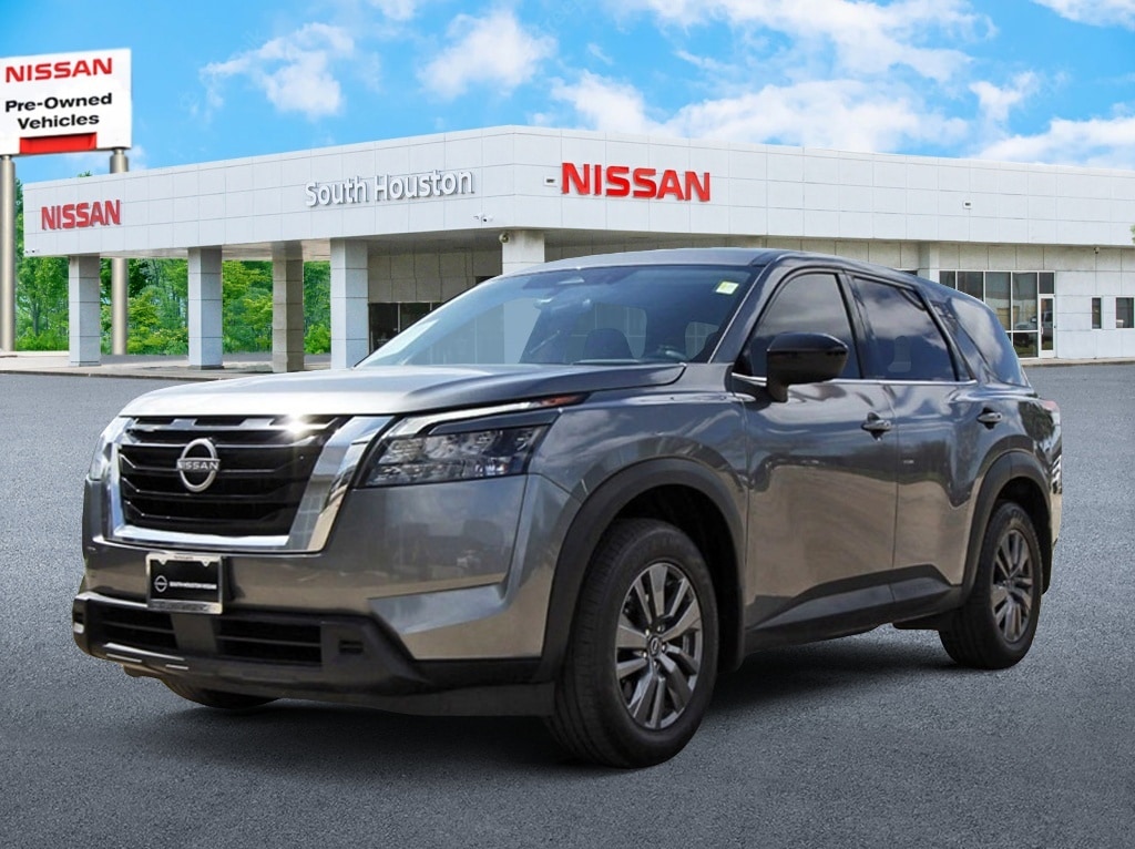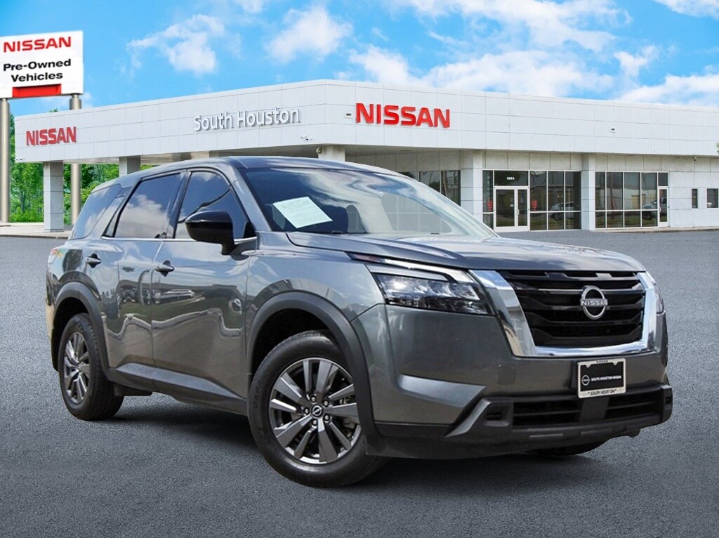 South Houston Nissan is proud to present you with another True Market Priced Pre-Owned Vehicle. This 2023 Nissan Pathfinder S is loaded with the following Factory Options: 18" Painted Alloy Wheels, 3rd row seats: bench, 4-Wheel Disc Brakes, 6 Speakers, ABS brakes, Air Conditioning, Alloy wheels, AM/FM radio: SiriusXM, Auto High-beam Headlights, Automatic temperature control, Axle Ratio: 4.334, Bench Seat Carpeted Floor Mats (Set of 4), Black Splash Guards (Set of 4), Blind Spot Warning, Brake assist, Bumpers: body-color, Cloth Seating Surfaces, Delay-off headlights, Driver door bin, Driver vanity mirror, Dual front impact airbags, Dual front side impact airbags, Electronic Stability Control, Four wheel independent suspension, Front anti-roll bar, Front Bucket Seats, Front Center Armrest, Front dual zone A/C, Front reading lights, Fully automatic headlights, Illuminated entry, Knee airbag, Low tire pressure warning, NissanConnect featuring Apple CarPlay and Android Auto, Occupant sensing airbag, Outside temperature display, Overhead airbag, Overhead console, Panic alarm, Passenger door bin, Passenger vanity mirror, Power door mirrors, Power steering, Power windows, Radio data system, Radio: AM/FM Audio System w/NissanConnect, Rear air conditioning, Rear anti-roll bar, Rear Parking Sensors, Rear reading lights, Rear side impact airbag, Rear window defroster, Rear window wiper, Reclining 3rd row seat, Remote keyless entry, Security system, Speed control, Speed-sensing steering, Split folding rear seat, Spoiler, Steering wheel mounted audio controls, Tachometer, Telescoping steering wheel, Tilt steering wheel, Traction control, Trip computer, and Variably intermittent wipers!!