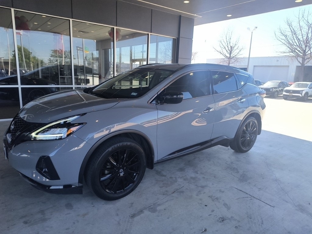 South Houston Nissan is proud to present you with another True Market Priced Pre-Owned Vehicle. This 2024 Nissan Murano SV is loaded with the following Factory Options: CVT with Xtronic SV Midnight Edition Package (Black Splash Guards, Illuminated Kickplates, Midnight Edition Badge, and Wheels: 20" Gloss Black Aluminum Alloy), CVT with Xtronic, 4-Wheel Disc Brakes, 4.667 Axle Ratio, 6 Speakers, ABS brakes, Air Conditioning, Alloy wheels, AM/FM radio: SiriusXM, AM/FM/CD/MP3/WMA Audio System, Auto High-beam Headlights, Auto-dimming Rear-View mirror, Automatic temperature control, Blind Spot Warning, Brake assist, Bumpers: body-color, CD player, Child-Seat-Sensing Airbag, Compass, Delay-off headlights, Driver door bin, Driver vanity mirror, Dual front impact airbags, Dual front side impact airbags, Electronic Stability Control, Four wheel independent suspension, Front anti-roll bar, Front Bucket Seats, Front Center Armrest, Front dual zone A/C, Front fog lights, Front reading lights, Fully automatic headlights, Heated door mirrors, Heated Front Bucket Seats, Heated front seats, Illuminated entry, Knee airbag, Leather steering wheel, Leatherette-Appointed Seat Trim, Low tire pressure warning, Midnight Edition Carpeted Floor Mats, NissanConnect featuring Apple CarPlay and Android Auto, Occupant sensing airbag, Outside temperature display, Overhead airbag, Overhead console, Panic alarm, Passenger door bin, Passenger vanity mirror, Power door mirrors, Power driver seat, Power passenger seat, Power steering, Power windows, Radio data system, Rear anti-roll bar, Rear reading lights, Rear seat center armrest, Rear side impact airbag, Rear window defroster, Rear window wiper, Remote keyless entry, Security system, Speed control, Speed-sensing steering, Speed-Sensitive Wipers, Splash Guards & Illuminated Kick Plates, Split folding rear seat, Spoiler, Steering wheel mounted audio controls, Tachometer, Telescoping steering wheel, Tilt steering wheel, Traction control, Trip computer, Turn signal indicator mirrors, Variably intermittent wipers, and Wheels: 18" Machined Aluminum-Alloy!!