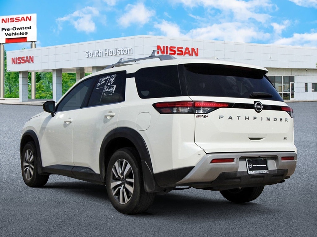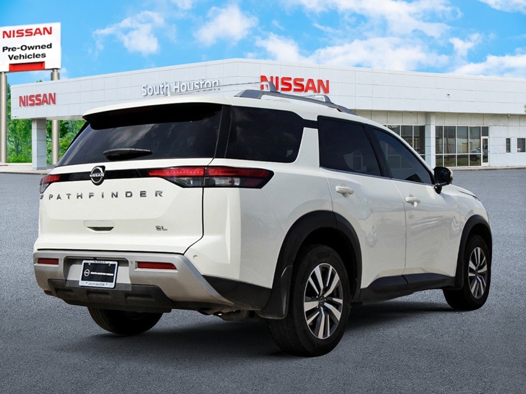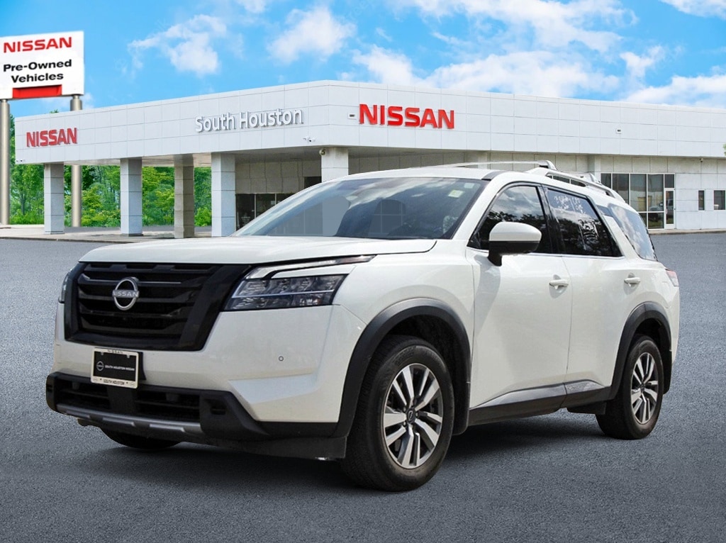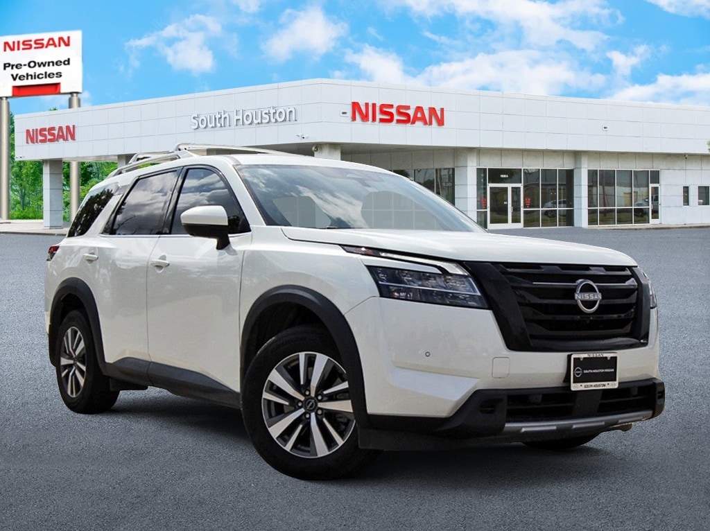 South Houston Nissan is proud to present you with another True Market Priced Pre-Owned Vehicle. This 2024 Nissan Pathfinder SL is loaded with the following Factory Options: 3rd row seats: bench, 4-Wheel Disc Brakes, 6 Speakers, ABS brakes, Air Conditioning, Alloy wheels, AM/FM radio: SiriusXM, Auto High-beam Headlights, Auto-dimming Rear-View mirror, Automatic temperature control, Axle Ratio: 4.334, Bench Seat Carpeted Floor Mats (Set of 4), Black Splash Guards (Set of 4), Brake assist, Bumpers: body-color, Cross Bars, Delay-off headlights, Driver door bin, Driver vanity mirror, Dual front impact airbags, Dual front side impact airbags, Electronic Stability Control, Emergency communication system, Exterior Parking Camera Rear, Four wheel independent suspension, Front anti-roll bar, Front Bucket Seats, Front Center Armrest, Front dual zone A/C, Front reading lights, Fully automatic headlights, Garage door transmitter: HomeLink, Heated door mirrors, Heated Front Bucket Seats, Heated front seats, Heated steering wheel, Illuminated entry, Knee airbag, Leather steering wheel, Leather-Appointed Seating Surfaces, Low tire pressure warning, Navigation system: NissanConnect with Navigation and Services, NissanConnect featuring Apple CarPlay and Android Auto, NissanConnect w/Navigation & Services, Occupant sensing airbag, Outside temperature display, Overhead airbag, Overhead console, Panic alarm, Passenger door bin, Passenger vanity mirror, Power door mirrors, Power driver seat, Power Liftgate, Power passenger seat, Power steering, Power windows, Radio data system, Radio: AM/FM Audio System, Rear air conditioning, Rear anti-roll bar, Rear reading lights, Rear seat center armrest, Rear side impact airbag, Rear window defroster, Rear window wiper, Reclining 3rd row seat, Remote keyless entry, Security system, Speed control, Speed-sensing steering, Split folding rear seat, Spoiler, Steering wheel mounted audio controls, Tachometer, Telescoping steering wheel, Tilt steering wheel, Traction control, Trip computer, Turn signal indicator mirrors, Variably intermittent wipers, and Wheels: 18" x 8J Machined Alloy!!