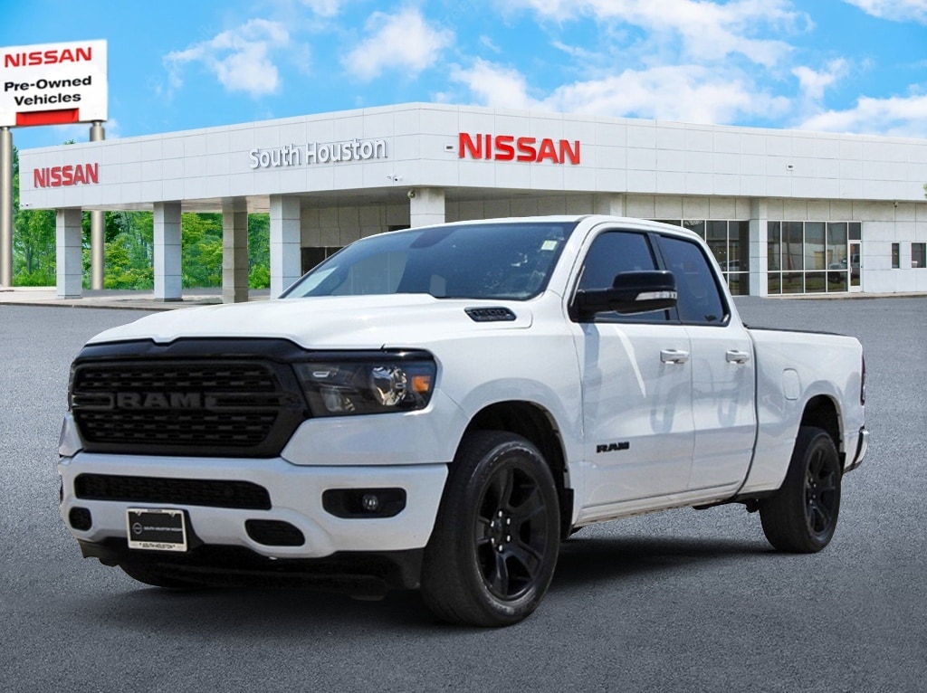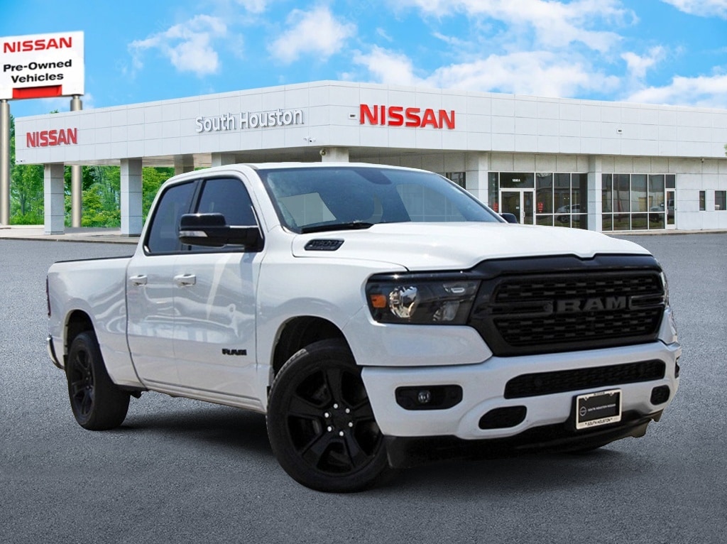South Houston Nissan is proud to present you with another True Market Priced Pre-Owned Vehicle. This 2022 Ram 1500 Big Horn/Lone Star is loaded with the following Factory Options: Big Horn Level 2 Equipment Group (115V Auxiliary Rear Power Outlet, 4G LTE Wi-Fi Hot Spot, Air Conditioning ATC w/Dual Zone Control, Auto-Dimming Rear-View Mirror, Black Exterior Mirrors, Bluetooth Handsfree Phone & Audio, Class IV Receiver Hitch, Cluster 7.0" TFT Color Display, Connectivity - US/Canada, Convex Wide-Angle Mirror Insert, Exterior Mirrors Courtesy Lamps, Exterior Mirrors w/Heating Element, Exterior Mirrors w/Supplemental Signals, Global Telematics Box Module (TBM), GPS Antenna Input, Heated Steering Wheel, Media Hub w/2 Charge Only USBs, ParkSense Front/Rear Park Assist w/Stop, Power-Folding Mirrors, Radio: Uconnect 5 W w/8.4" Display, Rear Window Defroster, Remote Start System, Security Alarm, and Universal Garage Door Opener), Night Edition (3 Rear Seat Head Restraints, 4 Way Front Headrests, Accent Color Premium Power Mirrors, Anti-Spin Differential Rear Axle, Front Seat Back Map Pockets, Manual Adjust 4-Way Front Passenger Seat, Rear 60/40 Folding Seat, and Wheels: 20" x 9.0" Premium Paint/Polished), Quick Order Package 25R Lone Star (Regional), 3.21 Rear Axle Ratio, 4-Wheel Disc Brakes, 48V Belt Starter Generator, 6 Speakers, ABS brakes, Air Conditioning, Alloy wheels, AM/FM radio, Brake assist, Bumpers: chrome, Cloth Bench Seat, Compass, Delay-off headlights, Driver door bin, Dual front impact airbags, Dual front side impact airbags, Electronic Stability Control, Emergency communication system: SiriusXM Guardian, Front anti-roll bar, Front Center Armrest w/Storage, Front fog lights, Front License Plate Bracket, Front reading lights, Front wheel independent suspension, Fully automatic headlights, Heated door mirrors, Illuminated entry, Integrated Voice Command w/Bluetooth, Leather steering wheel, Low tire pressure warning, MOPAR Front & Rear Rubber Floor Mats, Occupant sensing airbag, Outside temperature display, Overhead airbag, Overhead console, Panic alarm, ParkView Rear Back-Up Camera, Passenger door bin, Passenger vanity mirror, Power door mirrors, Power steering, Power windows, Radio data system, Radio: Uconnect 3 w/5" Display, Rear anti-roll bar, Rear seat center armrest, Rear step bumper, Remote keyless entry, Speed control, Split folding rear seat, Steering wheel mounted audio controls, Tachometer, Telescoping steering wheel, Tilt steering wheel, Traction control, Trip computer, Variably intermittent wipers, Voltmeter, and Wheels: 18" x 8" Cast-Aluminum Painted!!