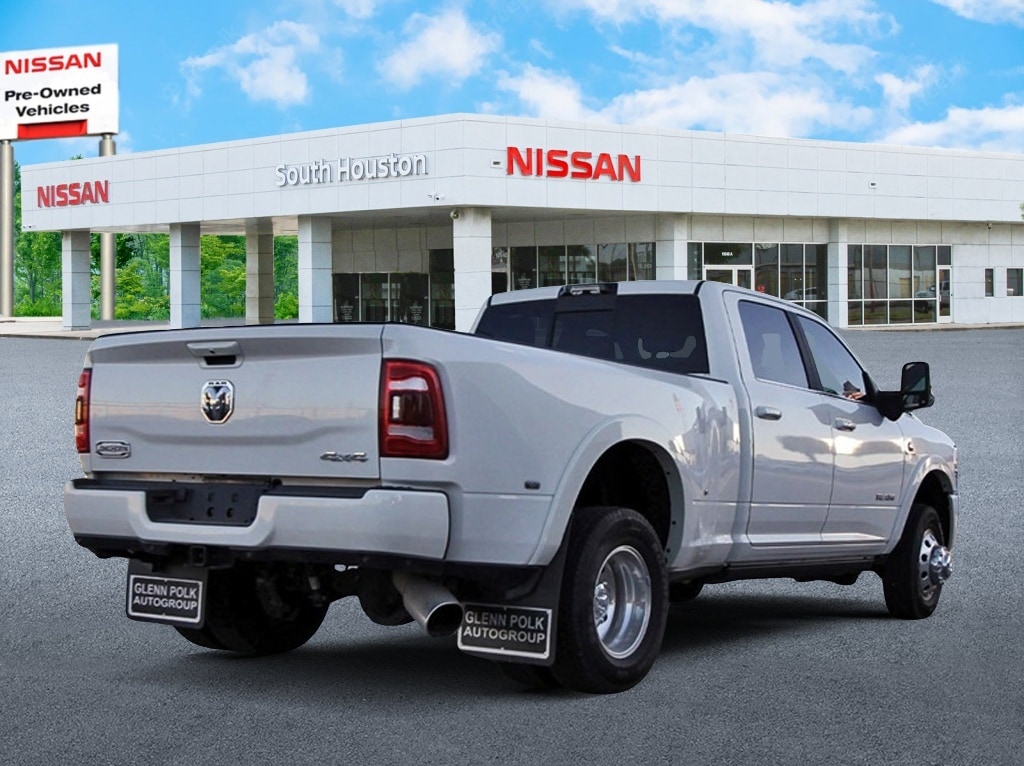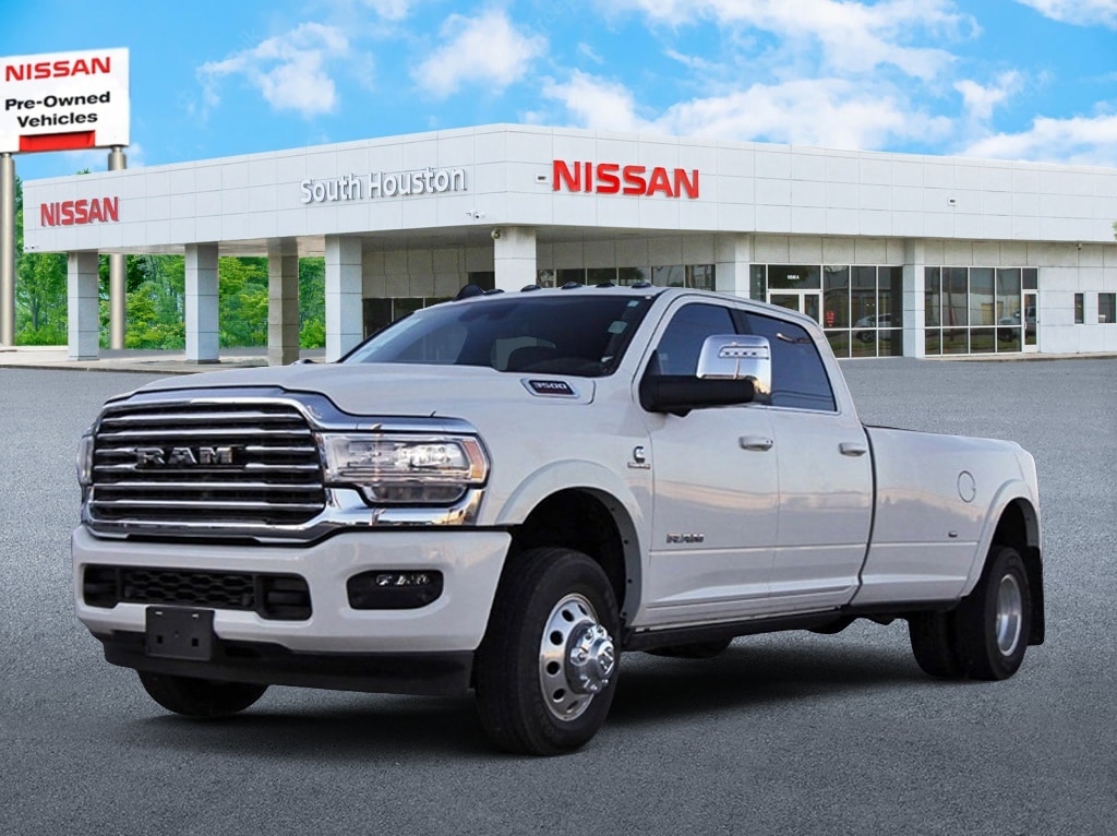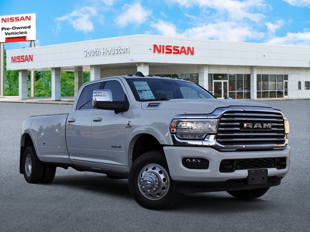 South Houston Nissan is proud to present you with another True Market Priced Pre-Owned Vehicle. This 2023 Ram 3500 Laramie Longhorn is loaded with the following Factory Options: Cold Weather Group (Engine Block Heater and MOPAR Winter Front Grille Cover), Longhorn Level 1 Equipment Group (12" Touchscreen Display, 17 Speaker harman kardon Premium Sound, 4G LTE Wi-Fi Hot Spot, Alexa Built-In, Apple CarPlay, Blind Spot & Cross Path Detection, Connected Travel & Traffic Services, Connectivity - US/Canada, Disassociated Touchscreen Display, For Details Visit DriveUconnect.com, For More Info, Call 800-643-2112, Global Telematics Box Module (TBM), Google Android Auto, GPS Antenna Input, GPS Navigation, HD Radio, Integrated Voice Command w/Bluetooth, LED Bed Lighting, MOPAR Spray In Bedliner, Off-Road Information Pages, Power Deployable Running Boards, Radio: Uconnect 5 Nav w/12.0" Display, Ramcharger Wireless Charging Pad, Selectable Tire Fill Alert, SiriusXM Radio Service, SiriusXM w/360L, and Trailer Tow Pages), Quick Order Package 21K Longhorn, Safety Group (Adaptive Cruise Control w/Stop, Adaptive Steering System, Full Speed Forward Collision Warning Plus, and Lane Keep Assist), Tow Technology Plus Group (Digital 3.0 Rear View Auto Dim Mirror and Trailer Reverse Steering Control), Towing Technology Group (CTR Stop Lamp w/Cargo View Camera, Surround View Camera System, and Trailer Reverse Guidance), 10 Speakers, 115V Auxiliary Rear Power Outlet, 2 Way Rear Headrest Seat, 220 Amp Alternator, 3.73 Axle Ratio, 4 Way Front Headrests, 4-Wheel Disc Brakes, 50 Gallon Fuel Tank, 5th Wheel/Gooseneck Towing Prep Group, 6000# Front Axle w/Hub Ext, ABS brakes, Active Noise Control System, Adjustable pedals, Air Conditioning, Alloy wheels, AM/FM radio: SiriusXM with 360L, Apple CarPlay/Android Auto, Audio memory, Auto High-beam Headlights, Auto-dimming door mirrors, Auto-dimming Rear-View mirror, Automatic temperature control, Box & Rear Fender Clearance Lamps, Brake assist, Bucket Seats, Bumpers: body-color, Center Hub, Chrome Flat Cab-Length Side Steps, Clearance Lamps, Compass, Delay-off headlights, Driver door bin, Driver vanity mirror, Dual front impact airbags, Dual front side impact airbags, Dual Rear Wheels, Electronic Stability Control, Electronically Controlled Throttle, Folding Flat Load Floor Storage, Front anti-roll bar, Front Bucket Seats, Front Center Armrest w/Storage, Front dual zone A/C, Front fog lights, Front License Plate Bracket, Front reading lights, Front Seat Back Map Pockets, Full Length Premium Upgraded Floor Console, Fully automatic headlights, Garage door transmitter, Genuine wood console insert, Genuine wood dashboard insert, Genuine wood door panel insert, Heated door mirrors, Heated Front Seats, Heated front seats, Heated rear seats, Heated Second Row Seats, Heated Steering Wheel, Heated steering wheel, High Back Seats, Illuminated entry, Leather steering wheel, Low tire pressure warning, Manufacturer's Statement of Origin, Memory seat, MOPAR Front & Rear Rubber Floor Mats, Navigation System, Occupant sensing airbag, Outside temperature display, Overhead airbag, Overhead console, Panic alarm, ParkView Rear Back-Up Camera, Passenger door bin, Passenger vanity mirror, Pedal memory, Power 8-Way Adjustable Passenger Seat, Power Adjust 8-Way Driver Seat, Power door mirrors, Power driver seat, Power passenger seat, Power steering, Power Sunroof, Power windows, Premium Filigree Leather Seats, Radio data system, Radio: Uconnect 5 Nav w/8.4" Display, Rain sensing wipers, Rear 60/40 Folding Seat, Rear reading lights, Rear seat center armrest, Rear step bumper, Rear window defroster, Remote keyless entry, Security system, Speed control, Split folding rear seat, Steering wheel mounted audio controls, Tachometer, Tilt steering wheel, Tip Start, Traction control, Trip computer, Turn signal indicator mirrors, Variably intermittent wipers, Ventilated Front Seats, Ventilated front seats, Voltmeter, Wheels: 17" x 6.0" Polished Al